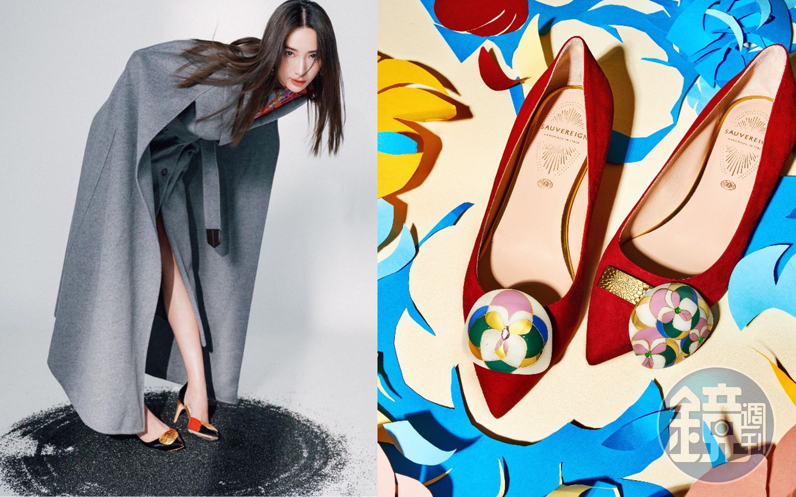 隋棠(左圖)曾穿上SAUVEREIGN金箔鞋亮相,品牌推出全新Jazz系列釦飾(右圖)。(SAUVEREIGN提供)發布時間:2021.10.19 18:42 臺北時間