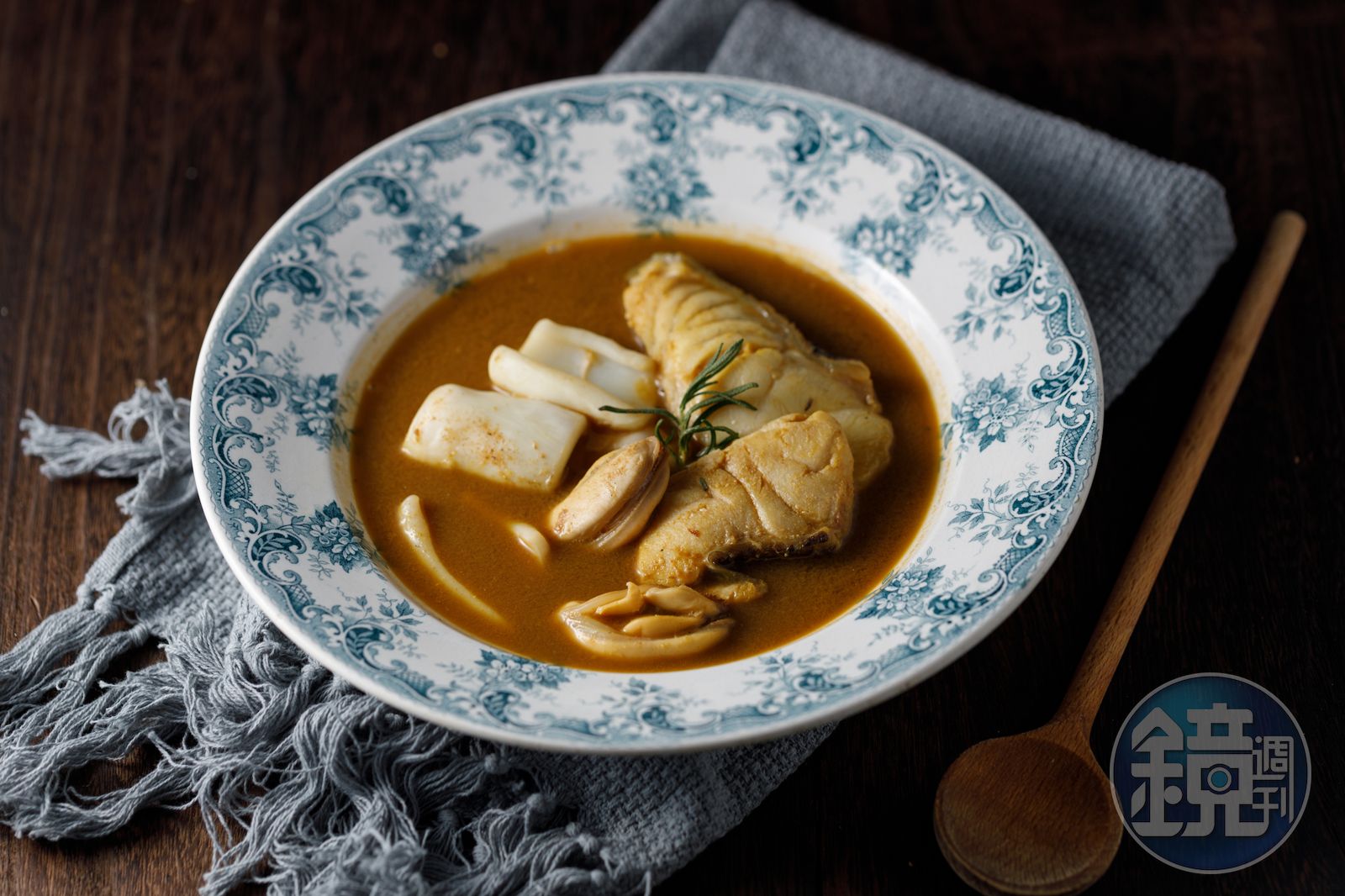 「刺蔥樹豆燉羊膝」使用番茄及洋蔥特調濃郁醬汁燉煮羊膝,加入樹豆與刺蔥豐富層次。(750元/份)招牌「馬賽魚湯」以茴香、百里香、月桂葉與柳橙皮等熬煮製成的高湯,附上澎湖小卷、淡菜及長濱鮮魚,海味十足。(690元/份) 「馬賽魚湯」的魚肉次次不同,海鮮都得生食寄送,生熟度由消費者自己拿捏,雖然多一道烹調工序,但鹹鮮的海港風味不遜餐廳內用。「即使有點麻煩,我仍希望做的是能讓大家在疫情期間想起Sinasera24的料理。」楊柏偉說。