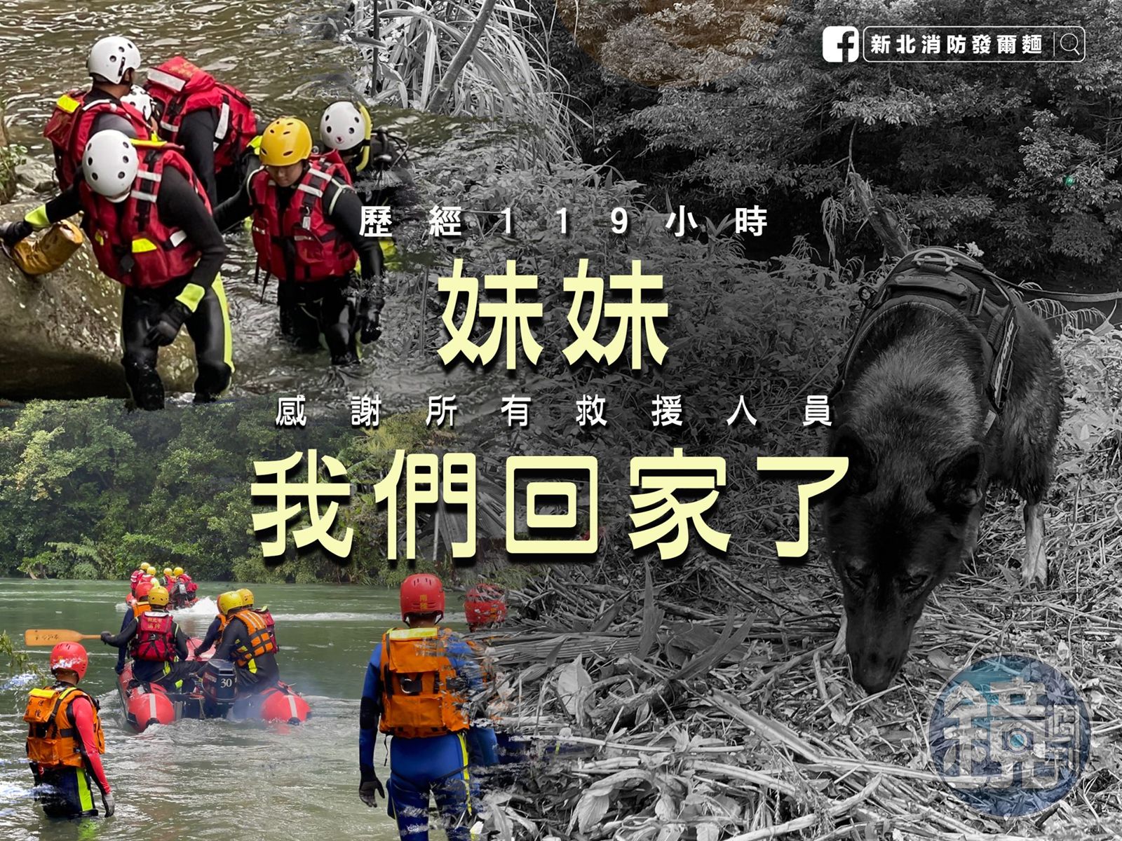 虎豹潭落水意外最後一名失聯的劉姓女童,於今日被尋獲,讓整個搜救案畫下句點。(翻攝自新北消防發爾麵臉書粉專)發布時間:2021.10.21 17:47 臺北時間