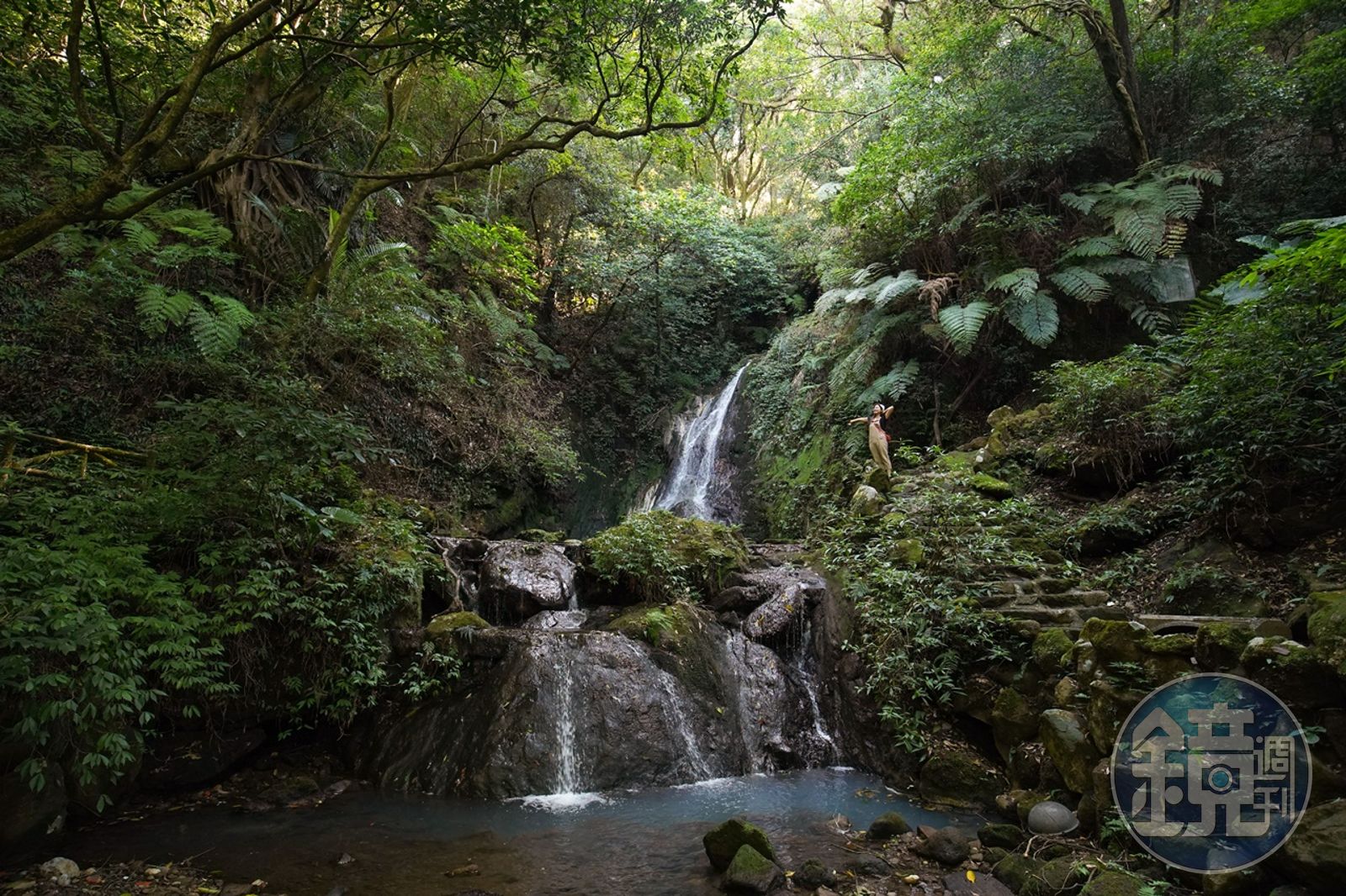 第一站來到了傳說中「馬路旁的瀑布祕境」,無需跋山涉水,停好車,走幾步路就能抵達沁涼溪水飛濺的消暑之境。半信半疑的我們停好車,循著潺潺水聲,竟真的抵達了藏身在陽明公園的青山水秀,山是真的青,水也真娟秀,「小隱潭瀑布」的泉水在陽光下呈現夢幻的沁藍色,旅途的一早就有好心情。