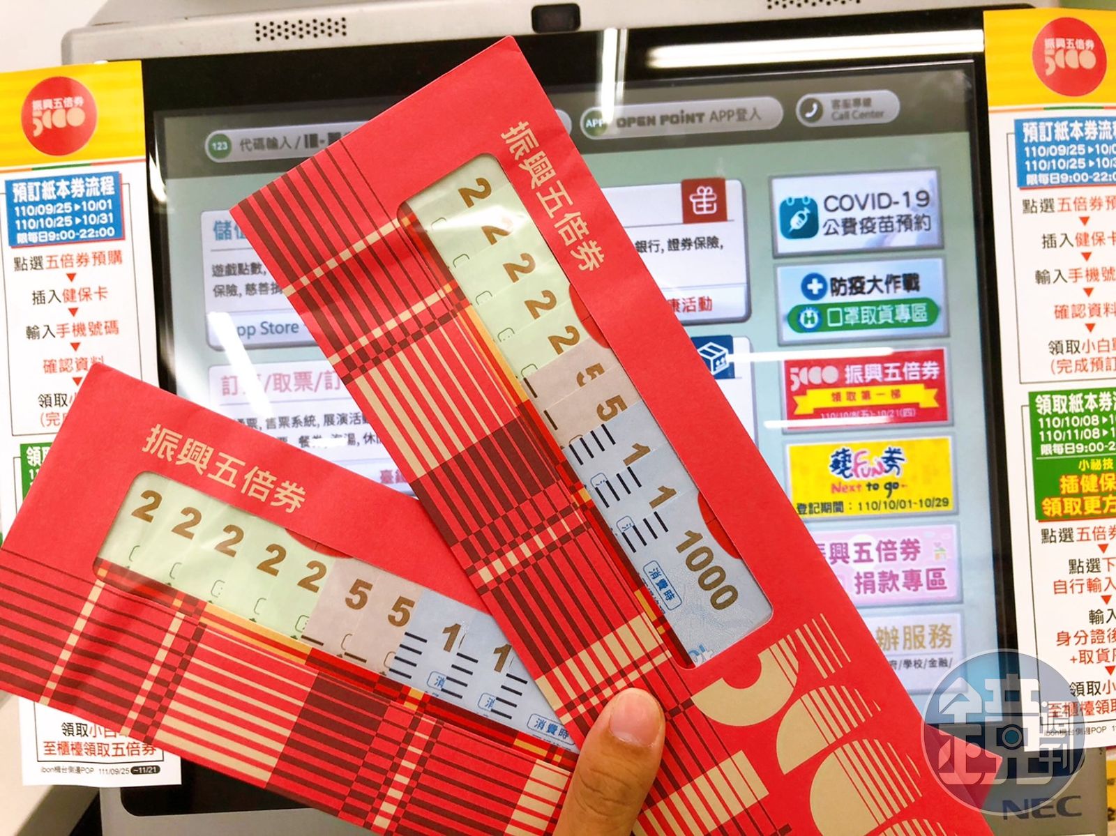 紙本五倍券今起開放第二波預約,今日起至10月31日可上五倍券官網、健保快易通App或各大超商進行預定,接著再選擇要領取的通路,共有超商、超市及藥妝店可選擇;並可於11月8日至11月21日的上午9時至下午10時進行領取。