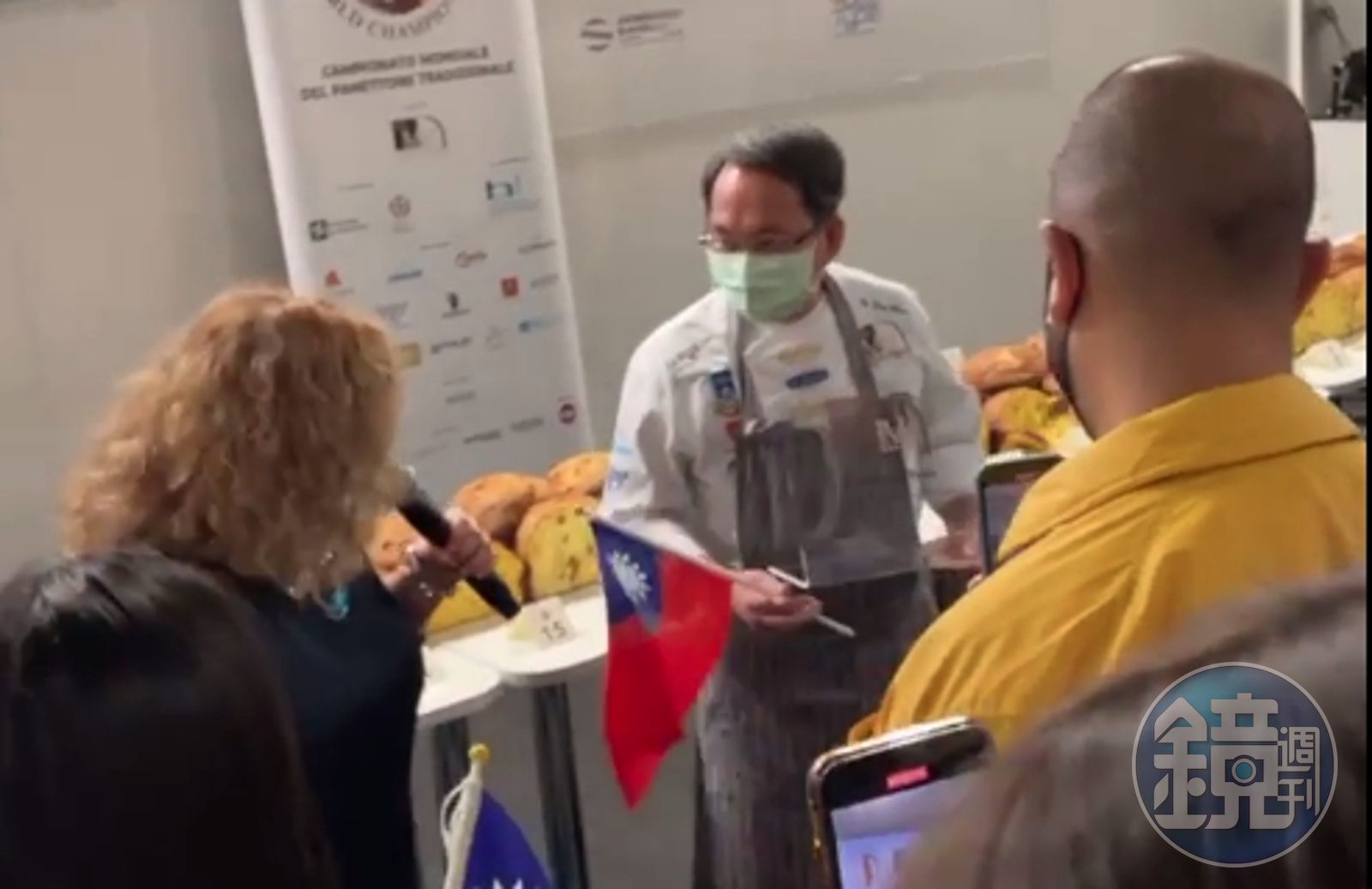吳寶春領獎時手持國旗領獎畫面引起熱議。(翻攝吳寶春麥方店直播影片)發布時間:2021.10.25 11:57 臺北時間