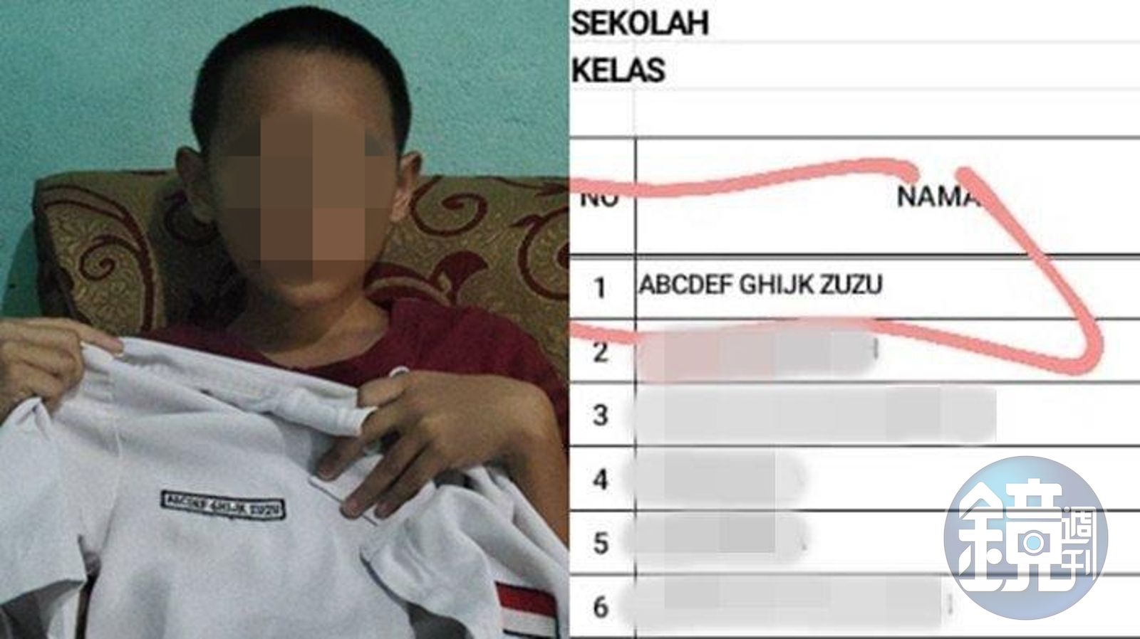 根據外媒報導,印尼有一名12歲的男童本名叫做「ABCDEF GHIJK Zuzu」,因為要接種疫苗時被當地媒體拍攝到意外爆紅,Zuzu來自南蘇門答臘的穆阿拉埃尼姆(Muara Enim),小名為阿德布茲(Adebz)。
