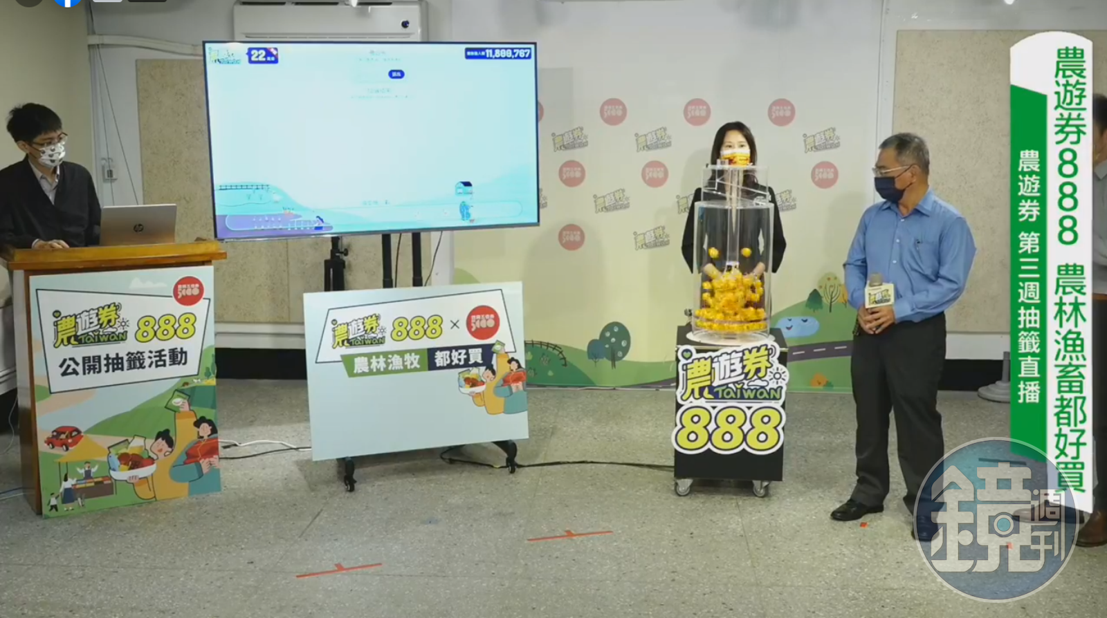 第一週農遊券抽出中獎號碼「89、32、54、597、453、152」,共23萬695人中籤;第二週農委會則抽出「50、13」2組號碼,一共有25萬6,327人中籤。農委會今由主祕陳重光抽出第三波的888元農遊券中獎名單,為身分證號碼尾數「60、75」的幸運民眾,統計共有26萬6,441人出線。