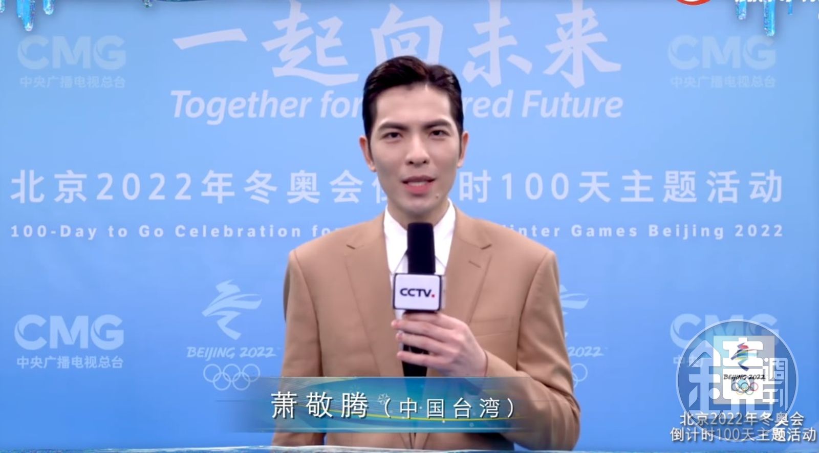 「一起向未來──北京2022年冬奧會倒計時100天主題活動」昨晚在北京隆重舉行。蕭敬騰代表「港澳台地區藝人」,先是與世錦賽花滑冠軍陳露和歌手孫楠、吉克雋逸合唱冬奧頒獎曲《致敬勇士》,之後又和鄧超、周筆暢、陳偉霆等明星,以及全紅嬋、張家齊、鄧麗萍、楊倩等奧運金牌共同飆唱《我們北京見》,相當激昂。