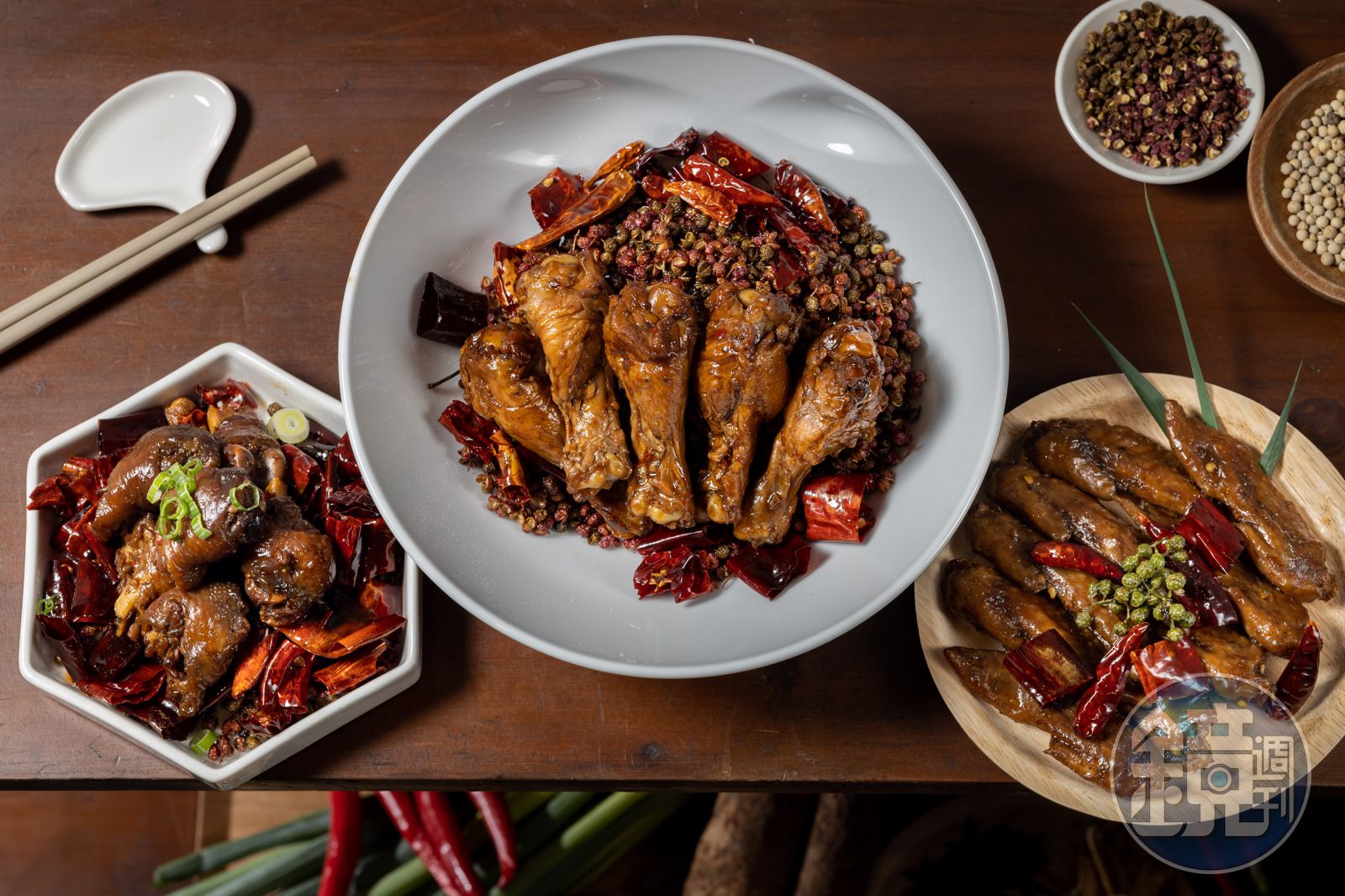有別於台式熱燙偏甜的滷味,蜀麻枋是以麻引辣的即食冷滷,辣度偏中上,吃到在嘴邊猛搧風也停不了口。滷汁加入草果、八角、桂皮、月桂葉、二荊條、雞心椒和子彈頭辣椒、花椒,光花椒就用了3種,青花椒、麻椒和大紅袍。挑選花椒也大有學問,邱涵乾走進廚房拿了一小碗大紅袍說:「要選皮厚、囊壁白,不能有梗,炒起來味道比較乾淨。」