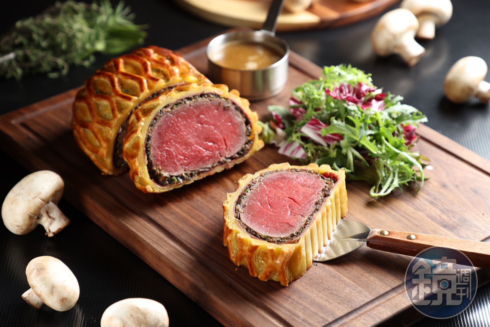 來這兒想吃什麼可看人數決定,人數少的話,也有很好的牛排,但除了大塊文章的排餐,也看得到歐式元素,「黑松露威靈頓牛排」內裡菲力極嫩極美,搭配的醬汁更加了久熬濃縮的法式雞湯;「法式酥皮鮭魚派」白醬質地不厚重,藏著檸檬皮和九層塔的清新。而「炸廣島牡蠣」的麵衣裡加了啤酒添香增酥,又有英式炸魚排的影子。