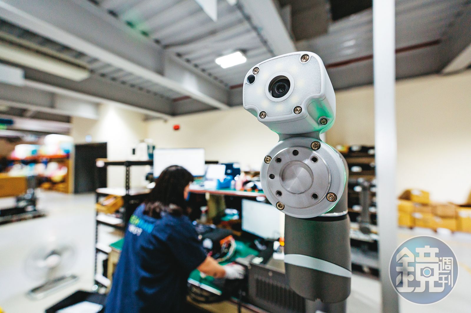 原來,傳統的機器手臂如同一塊積木底座,針對不同的應用,需要買主加裝不同的零組件才能運行,例如取放件專用的吸盤和夾爪、噴漆上膠的噴頭,負責視覺的鏡頭也是其一選項。