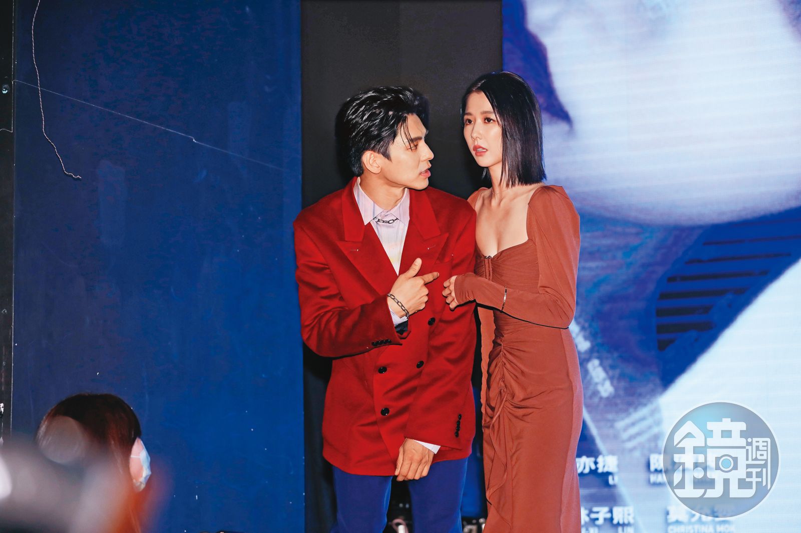 邵雨薇(右)深U投出「觸身球」,小編對林柏宏(左)投以羨慕眼光。發布時間:2021.11.07 05:58 臺北時間