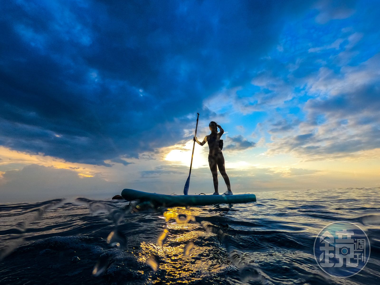 想看日出,就得起得比太陽早。凌晨3點40分全體已在「船說獨木舟」基地集合,教練詳細講解安全帽、救生衣等裝備後便摸黑出發。漆黑的沙灘上,大夥兒靠著頭燈前行,而要能在海上怡然操作SUP立槳或是獨木舟,教練的教學也得仔細聆聽默記。帶著忐忑心情,一人一塊板,在好幾位小鮮肉教練的協助下,我順利「航行出海」。