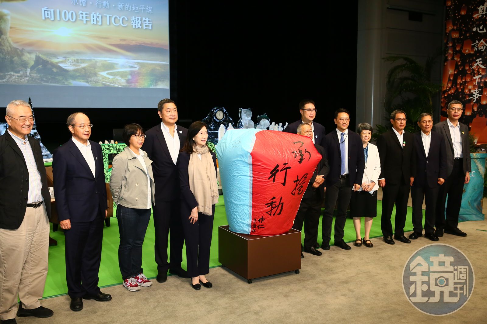 活動尾聲,台泥董事長張安平也跟夫人辜懷如及所有來參與的主管、同仁、退休台泥員工,分別在環保天燈上寫下對未來的許願及夢想,許諾這一代的台泥人,能為100週年時的台泥,立下最好的基礎。