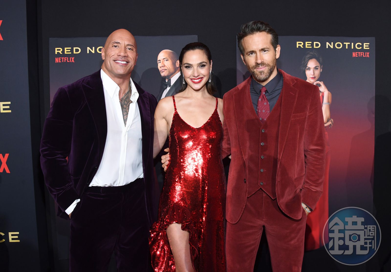 呼應「紅色」片名,身穿紅色Loewe禮服,搭配Tiffany珠寶的蓋兒加朵,以開衩搭配細肩帶的設計,證明了女神真的不是當假的,6月才生完第3胎立刻就恢復了纖細的身材。與巨石強森(Dwayne Johnson)、萊恩雷諾斯(Ryan Reynolds)一起拍戲,她說:「跟兩位男士合作真的開心又愉快,拍攝過程最大的挑戰就是我不能笑場,我要保持戲裡的神秘面貌,不可以偷笑,但天知道我多愛大笑啊!」至於她的小孩是否知道媽媽是享譽全球的巨星時,蓋兒回答:「我小孩只知道我是演員,有名的演員,除此之外對我的工作了解有限,畢竟我是他們的媽媽。」
