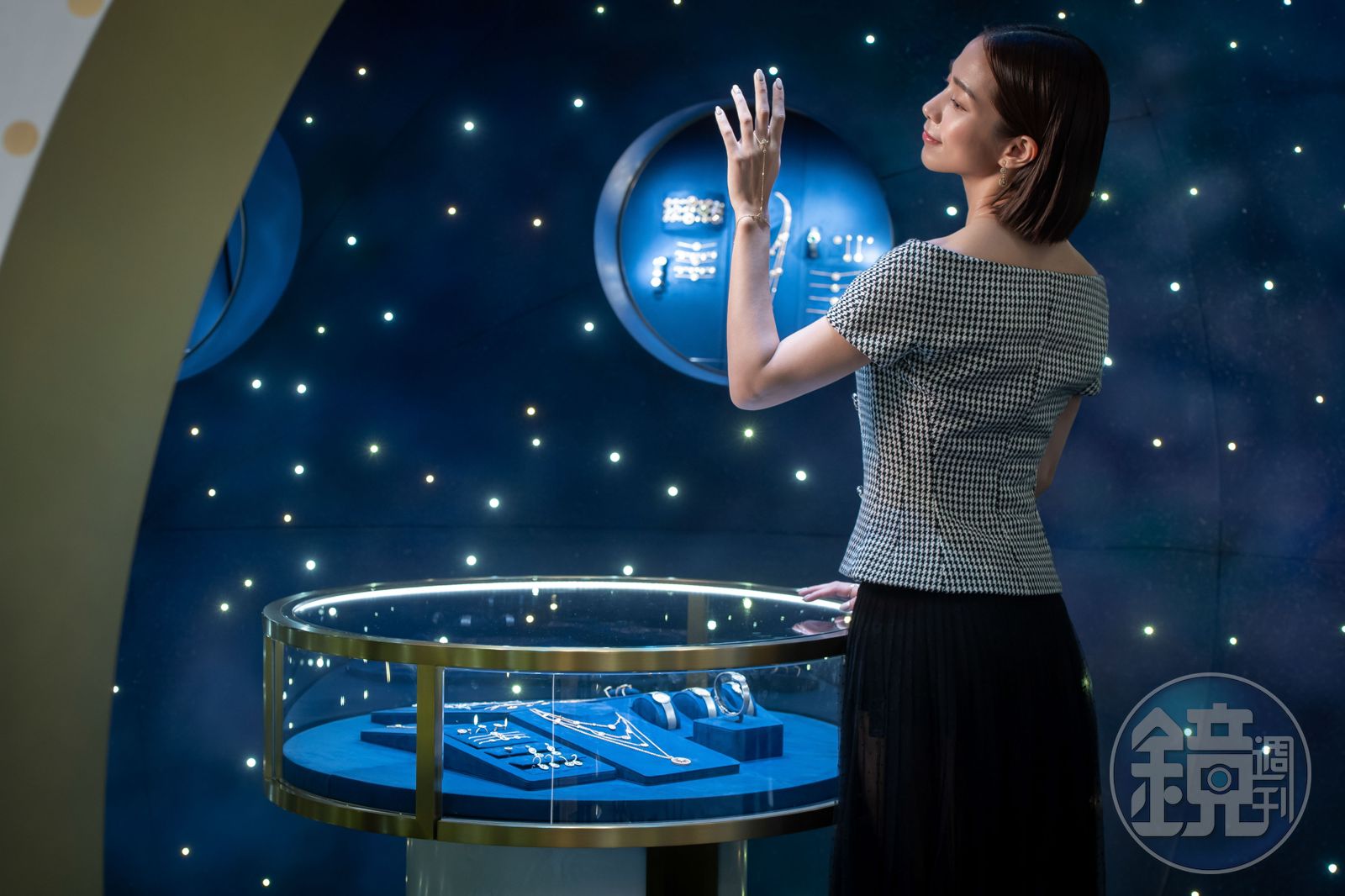 對於活動上自己配戴的Rose des Vents「羅盤玫瑰黃K金珍珠母貝鑽石手鍊戒」,她很有想法的說:「『羅盤』有著不管在哪裡我都會找到你的寓意,我覺得非常適合送給伴侶、也能送給自己,給迷失自己時的提醒,更適合送給仇人,告訴對方無論如何我都會找到你,很浪漫吧?」