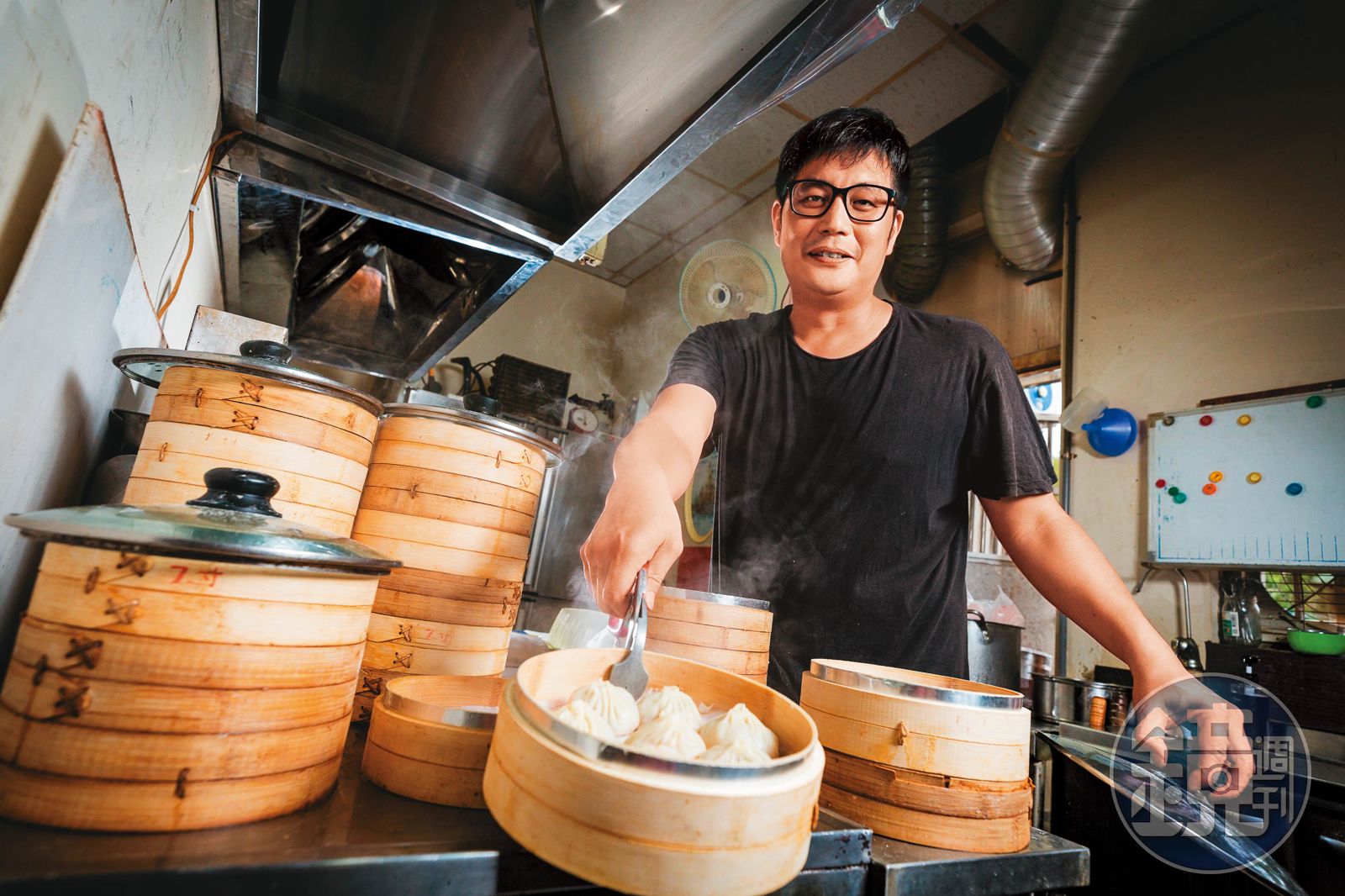 之後他又去方家小館、宋江餡餅粥工作,19歲在父親資助下,取自師出溢香園的典故,在淡水開了溢鼎香手作點心。「我開店後大家都跑來嘗鮮,《美鳳有約》也來採訪。」他創業時一人當家,爸媽在學校教完書再趕到店裡幫他洗碗,「附近剛好有一家老人院,我店還沒開,外省老奶奶就在外面敲鐵門喊:『今天開不開門啊?』我去老人院擺攤,2小時就賣了上百籠湯包。」