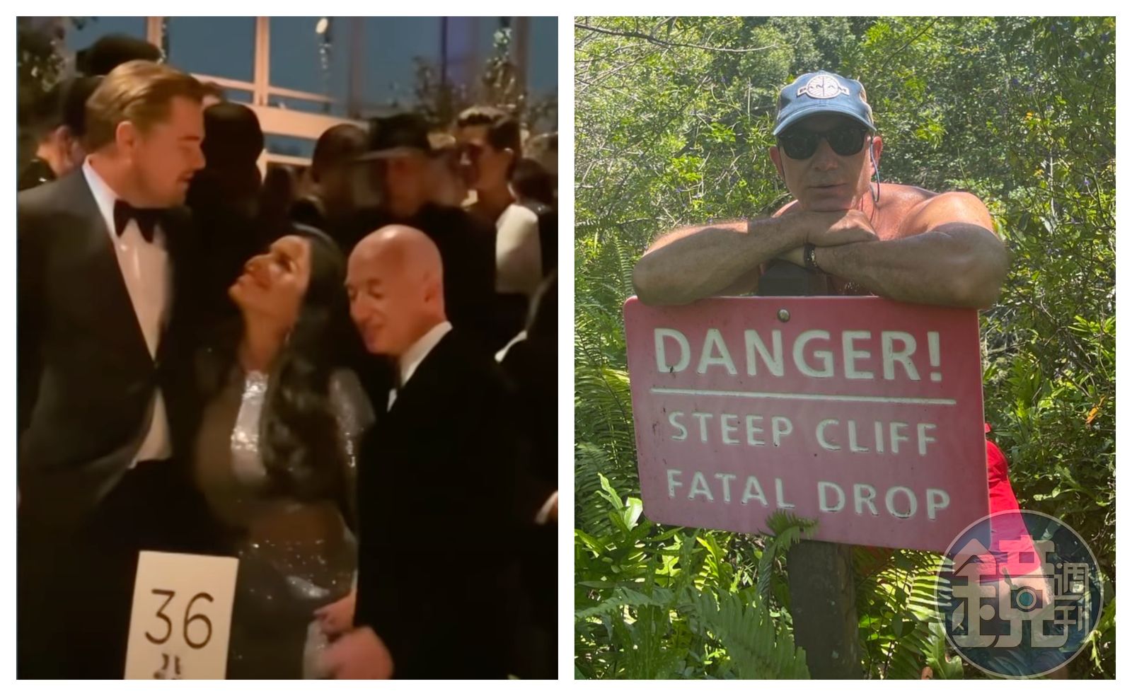 桑琪絲(中)整個人貼到李奧納多(左)身上。(翻攝barstoolsports推特) 桑琪絲(中)還對李奧納多露出勾魂眼神,旁邊的貝佐斯(右)表情無奈。(翻攝barstoolsports推特) 這段影片在網路上瘋傳,貝佐斯發現後今也將影片轉發到推特上,他tag李奧納多寫道:「李奧,過來,我給你看一點東西⋯」接著附上一張照片,照片中貝佐斯打赤膊戴墨鏡,身前的牌子上寫有「危險!懸崖陡峭,掉下去就沒命」警語,霸氣外露,無疑向李奧宣示主權。