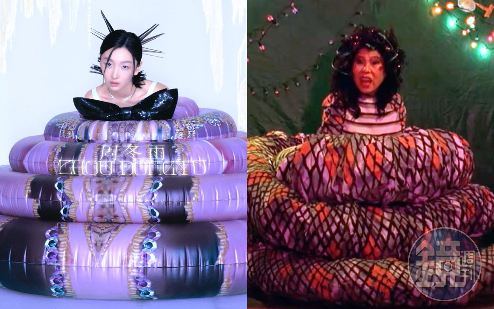 文謅謅地說那麼多,明明是抄襲文英阿姨在電影《熱帶魚》中的巨蛇娘娘造型嘛!連時尚部落客「Mr.布雷蕭」也不禁在臉書分享,直呼:「你們說,文英阿姨是不是走得非常前面!」