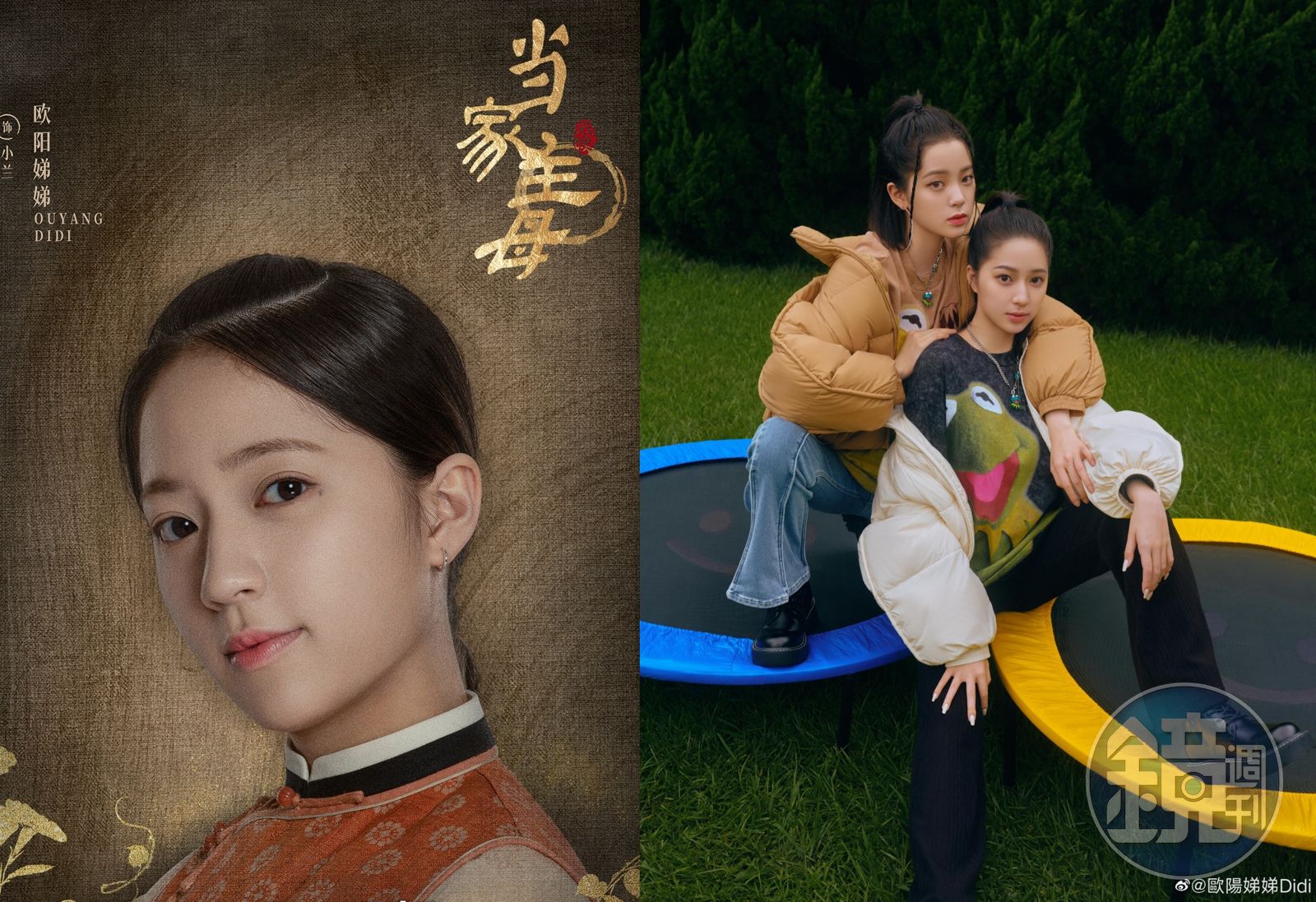 今年7月底才剛滿17歲的歐陽家最小女兒歐陽娣娣,在經過牙齒矯正後,樣子跟二姐歐陽娜娜愈來愈像,而她也跟著娜娜的腳步,赴中國發展,出現在于正的古裝劇《當家主母》的宣傳照,在劇中飾演「小蘭」一角,該劇有蔣勤勤當家,影后惠英紅也入列,演員陣容堅強。