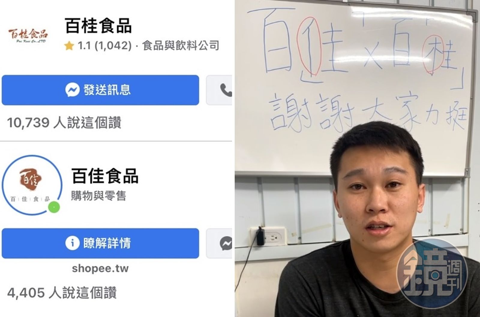 「百佳食品」的老闆昨(11日)晚也開直播,澄清百「佳」不是百「桂」,並表達面對這場風波的心情,雖然收到不少搞錯的網友私訊謾罵,但仍感謝許多人力挺幫忙解釋,讓他覺得台灣人素質很高。