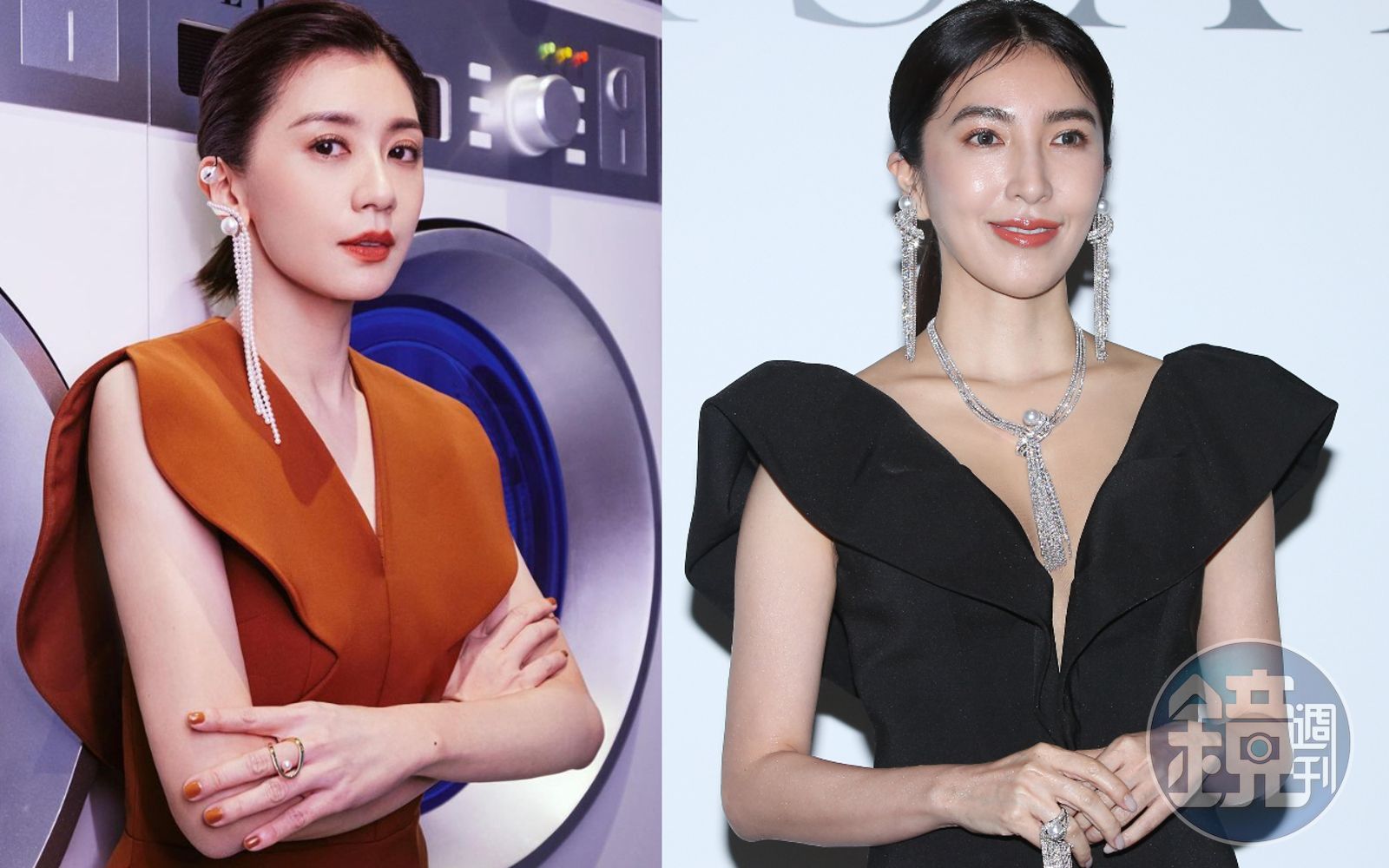 出席Tasaki高級珠寶展的楊謹華(右圖),以及參加《Elle》30週年特展的賈靜雯(左圖),都佩戴Tasaki瀑布耳環。發布時間:2021.11.14 18:13 臺北時間