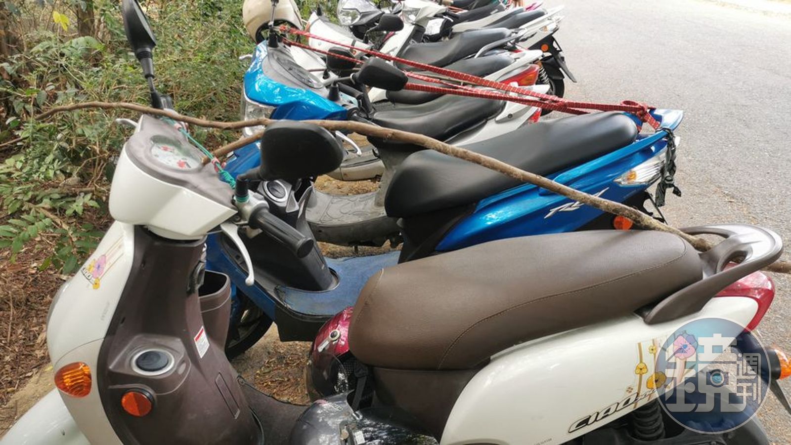有民眾昨(14日)在臉書社團「我是高雄人」發文,表示在柴山停車場發現有些機車上都會插著一根樹枝,甚至有些機車還另外用繩子固定樹枝,不讓它掉落,這讓民眾好奇發問,「是為了防止猴子嗎?可是,我沒看過猴子坐在上面。」