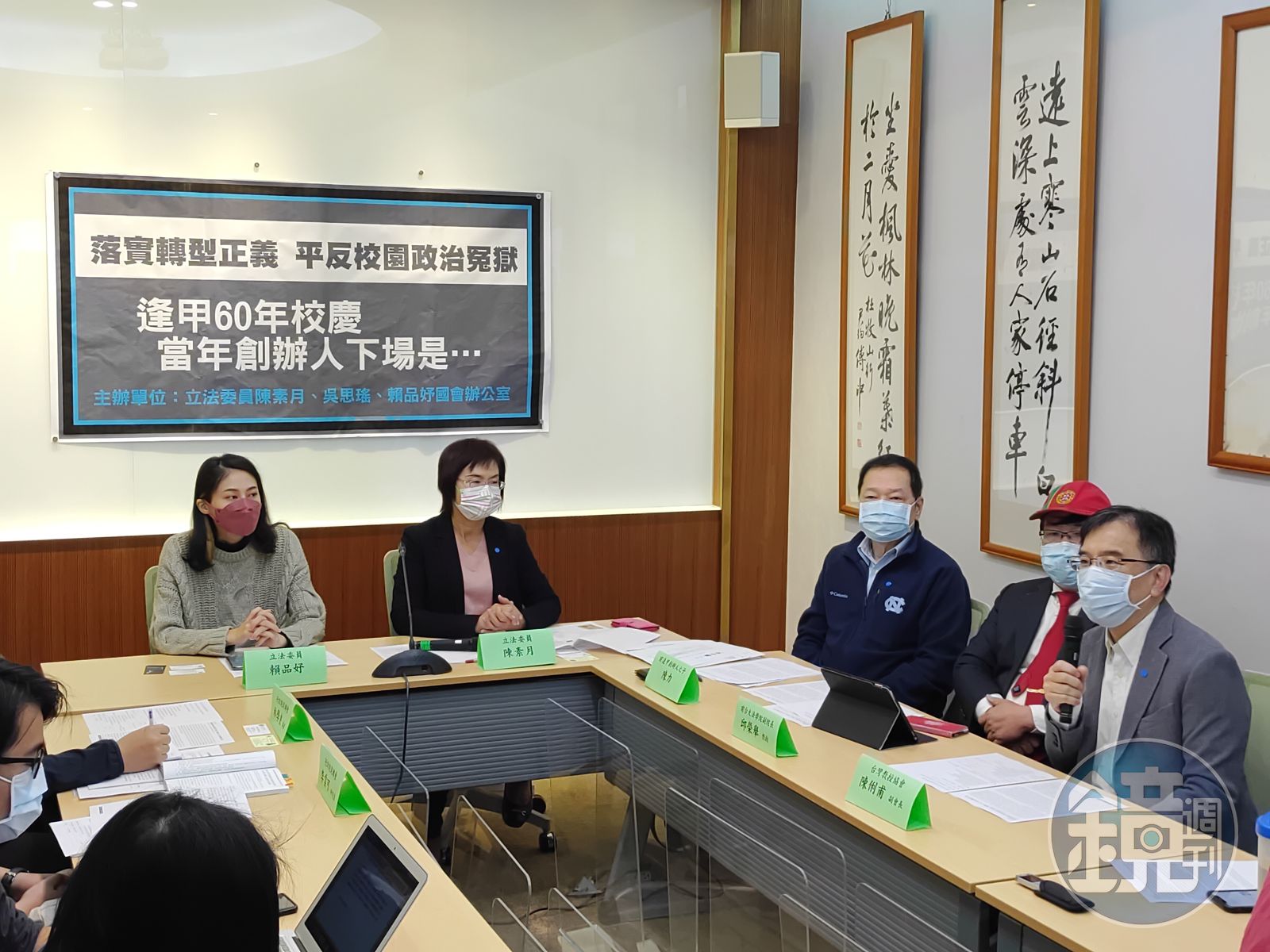 民進黨立委陳素月、賴品妤特地選在逢甲大學校慶這天舉行記者會,並邀請台大法學院前副院長邱榮舉、台灣教授協會副會長陳俐甫及促轉會專員林學良與李雲可到場參與。
