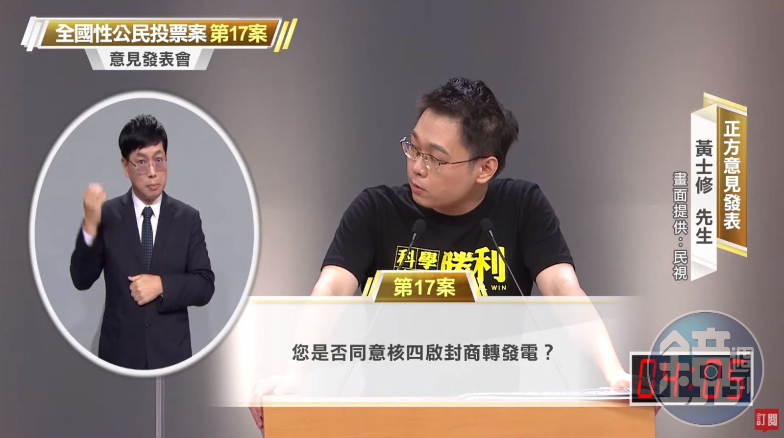 核能發電處處長許永輝過去曾擔任核二廠廠長,也曾是核四廠試運轉的負責人,如今他以反方代表的身分參加電視意見發表,闡述不該重啟核四的理由。然而黃士修卻指出,過去許永輝在擔任核四試運轉負責人時,曾在安檢報告簽名,如果許說任何核四安全有問題的話,他已請律師團隨時蒐證,還秀出一份「刑事訴狀草稿」,揚言等發表會結束就會立刻去台北地檢署告發瀆職、偽造文書等罪。