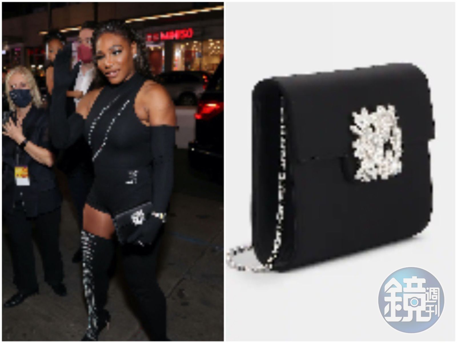 Serena Williams手上拿著Roger Vivier Bouquet系列花鑽晚宴包出席美國藝術電影學會典禮,為電影《王者理查》站台。Roger Vivier Bouquet Strass花鑽晚宴包,NT$51,600。發布時間:2021.11.21 18:08 臺北時間