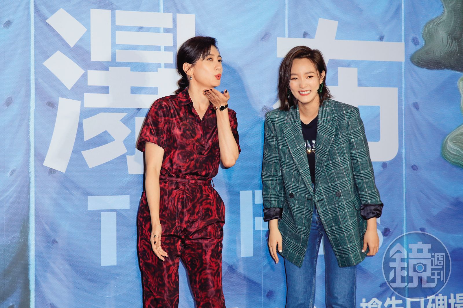 賈靜雯(左)以《瀑布》問鼎今年金馬影后寶座,她在片中與王淨(右)的母女互動張力,引來大多影評叫好。發布時間:2021.11.24 05:58 臺北時間