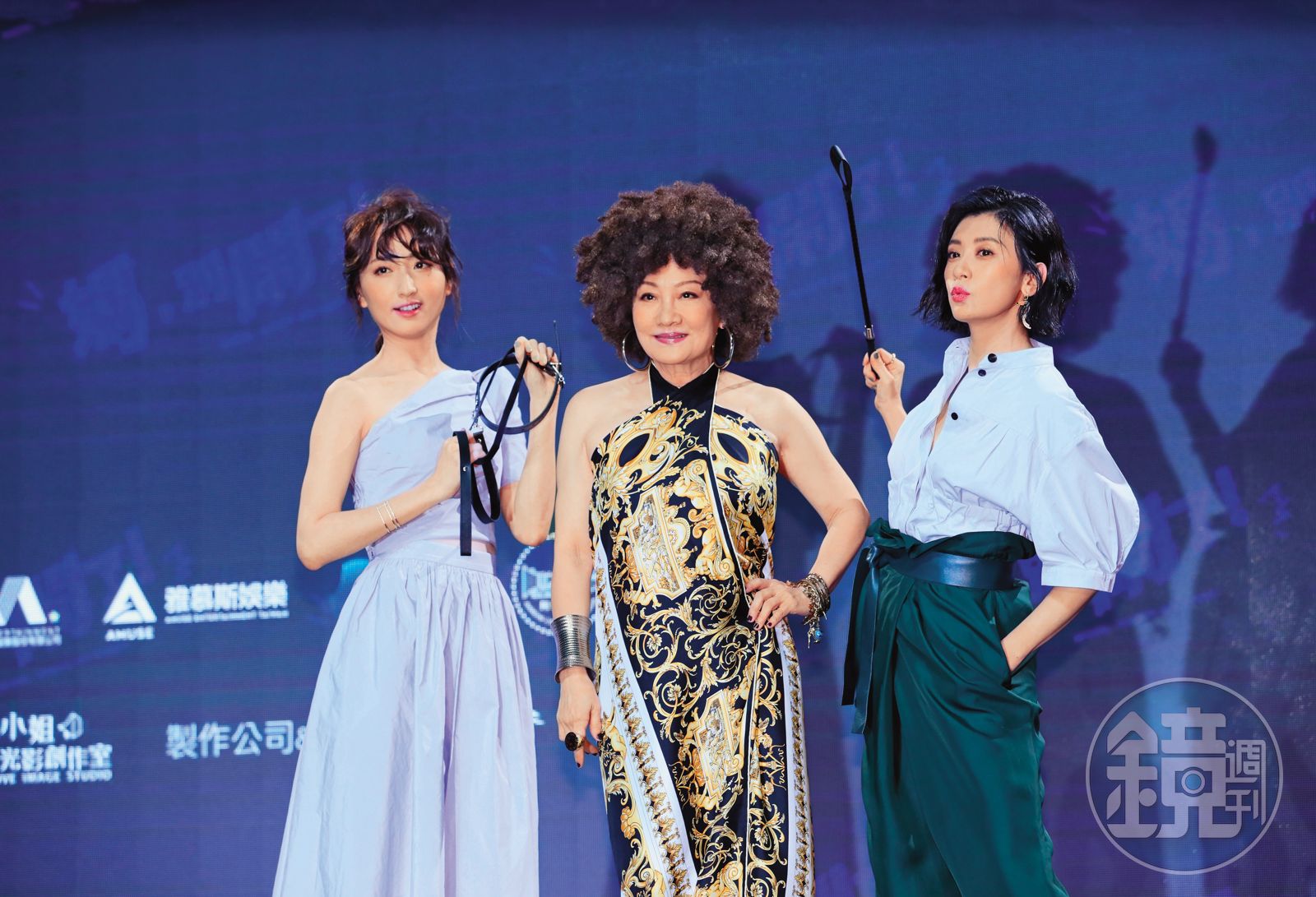 去年7月賈靜雯(右)和比莉(中)、柯佳嬿(左)出席《媽,別鬧了!》卡司發布會。發布時間:2021.11.24 05:58 臺北時間