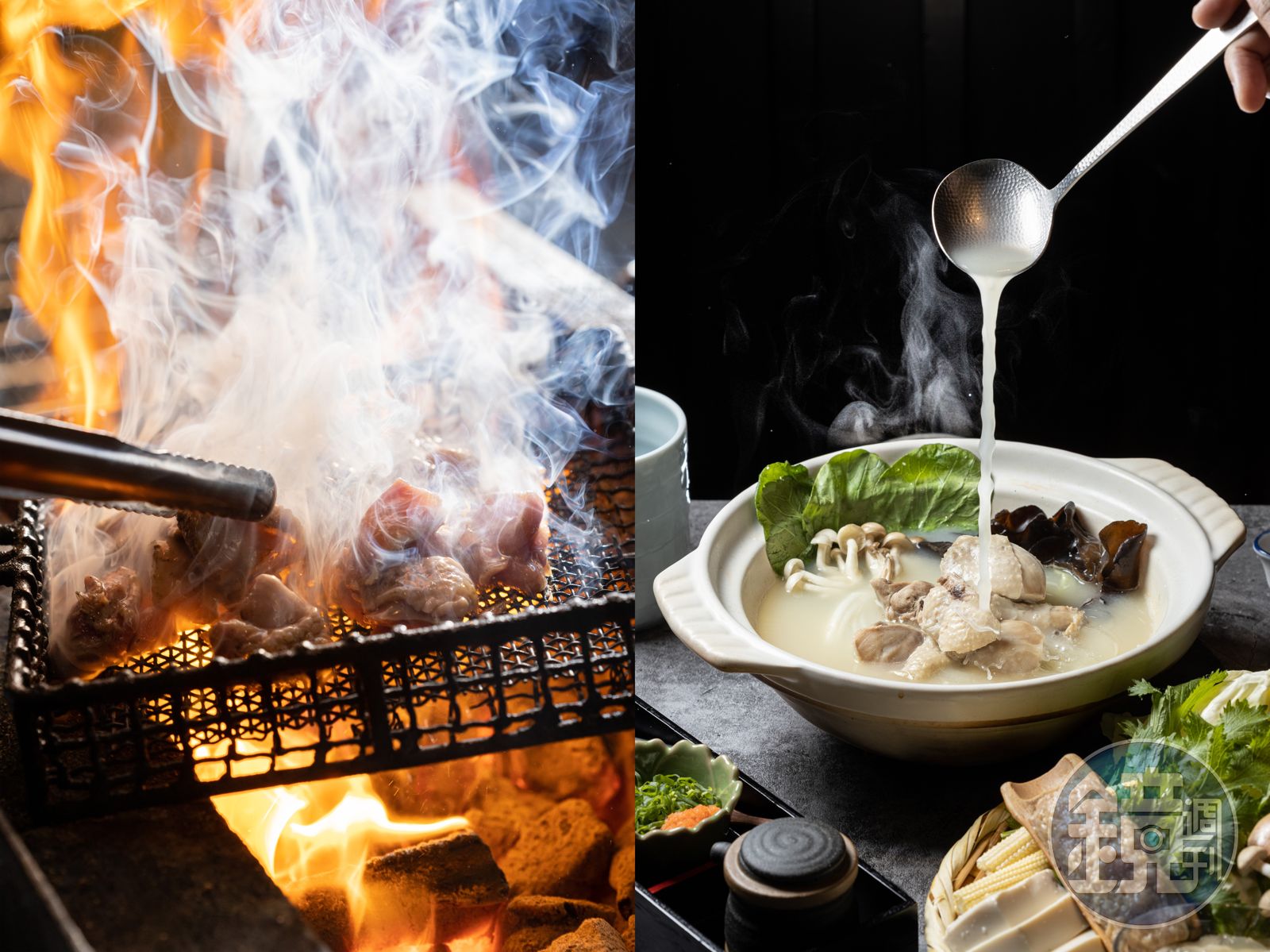 台南海安路上的「一羽鯨吞」用日式手法料理台灣黑羽土雞,「水炊鍋」(右)和「炭火黑燒」(左)都是必點美味。發布時間:2021.11.29 12:57 臺北時間