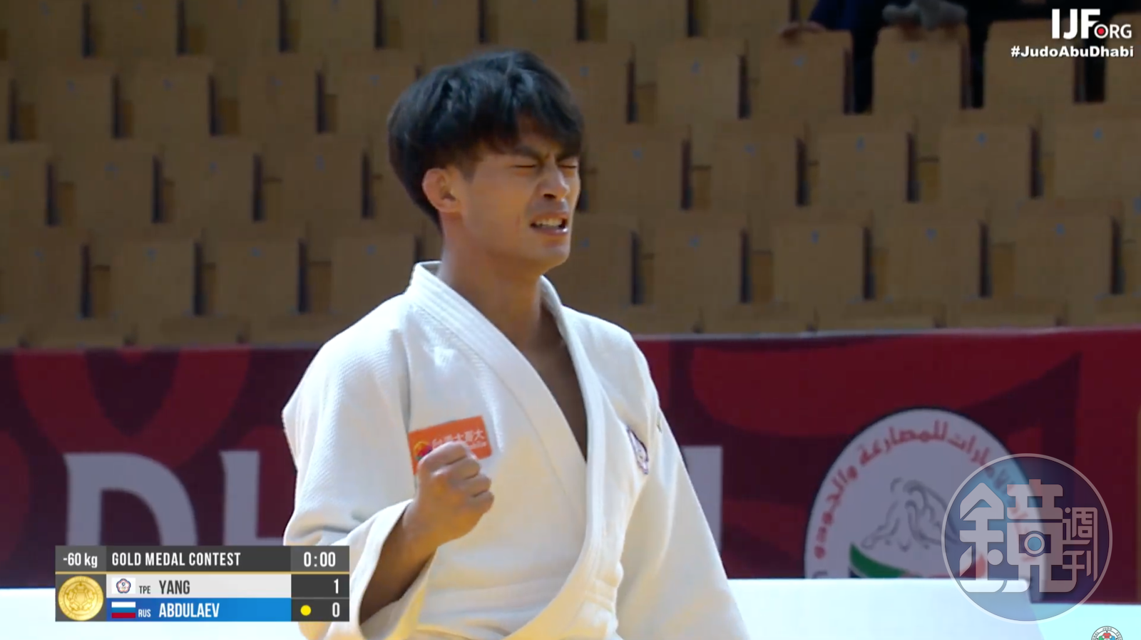 台灣「柔道男神」楊勇緯今(26)日於阿布達比大滿貫賽60公斤級登場,在金牌戰以1:0擊敗俄羅斯好手阿布拉耶夫(Ramazan Abdulaev),收下生涯首面柔道大滿貫賽金牌。