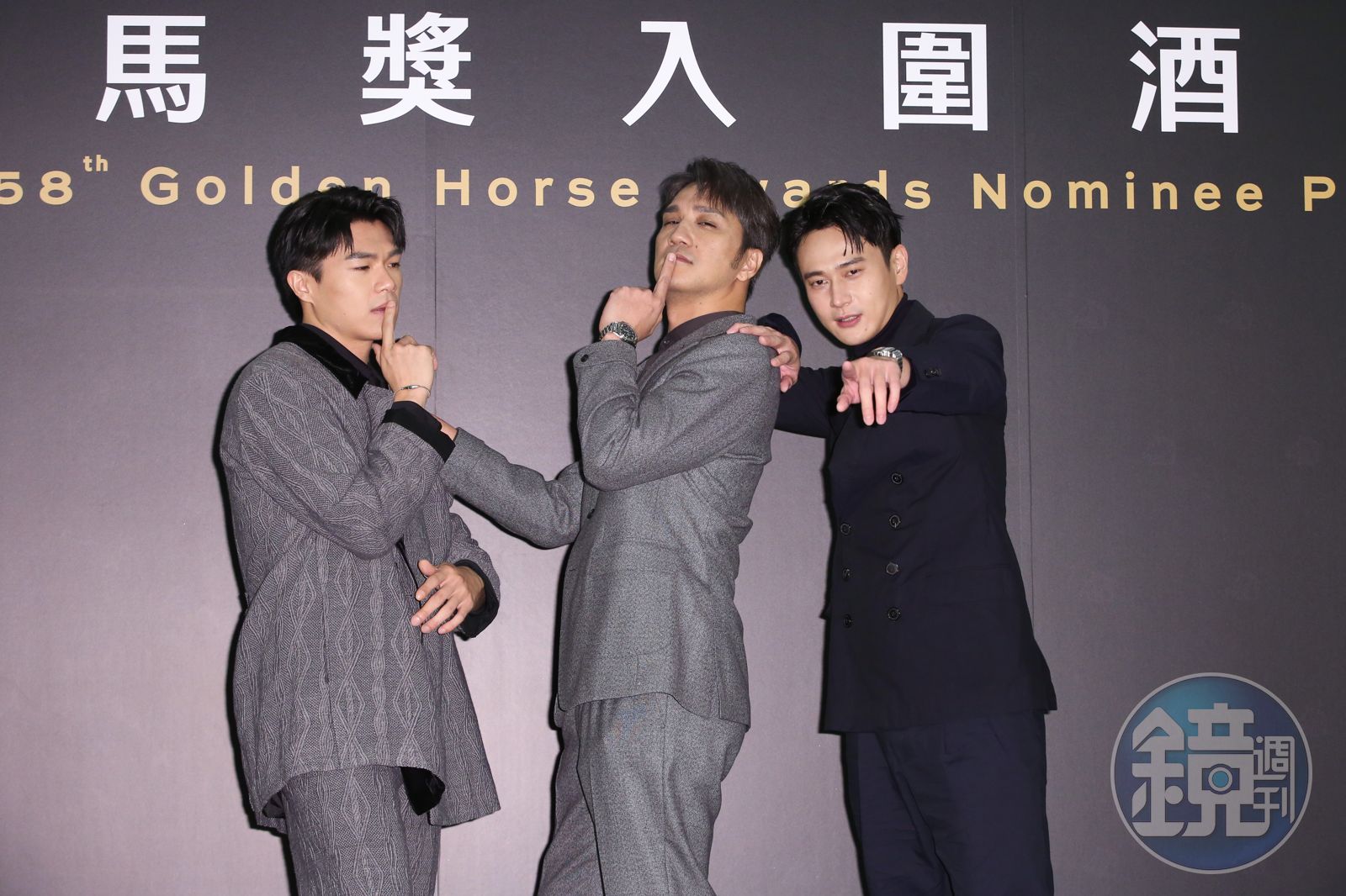 入圍最佳男配角的柯煒林(左起)、馬志翔、劉冠廷,拍合照時自命為偶像團體,然後開始對著鏡頭放電!發布時間:2021.11.26 21:46 臺北時間