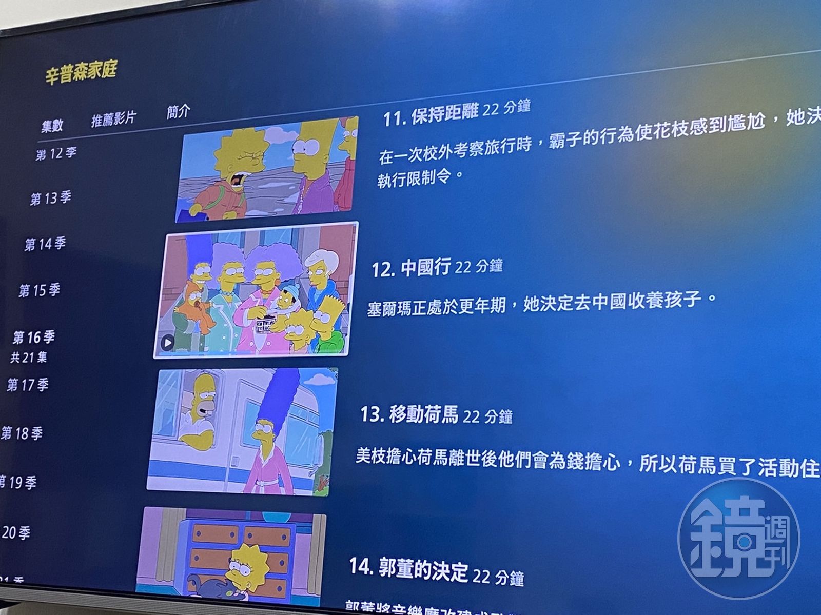 根據《法新社》報導,香港Disney+最近正式對外公開,然而該平台上的《辛普森家庭》卻少了第16季第12集。據報導,該集於2005年首播,劇情講述辛普森一家的媽媽「美枝」的姊姊塞爾瑪想要領養一個嬰兒,因此全家人陪她到中國尋求領養機構,也順道一訪北京的許多知名景點。