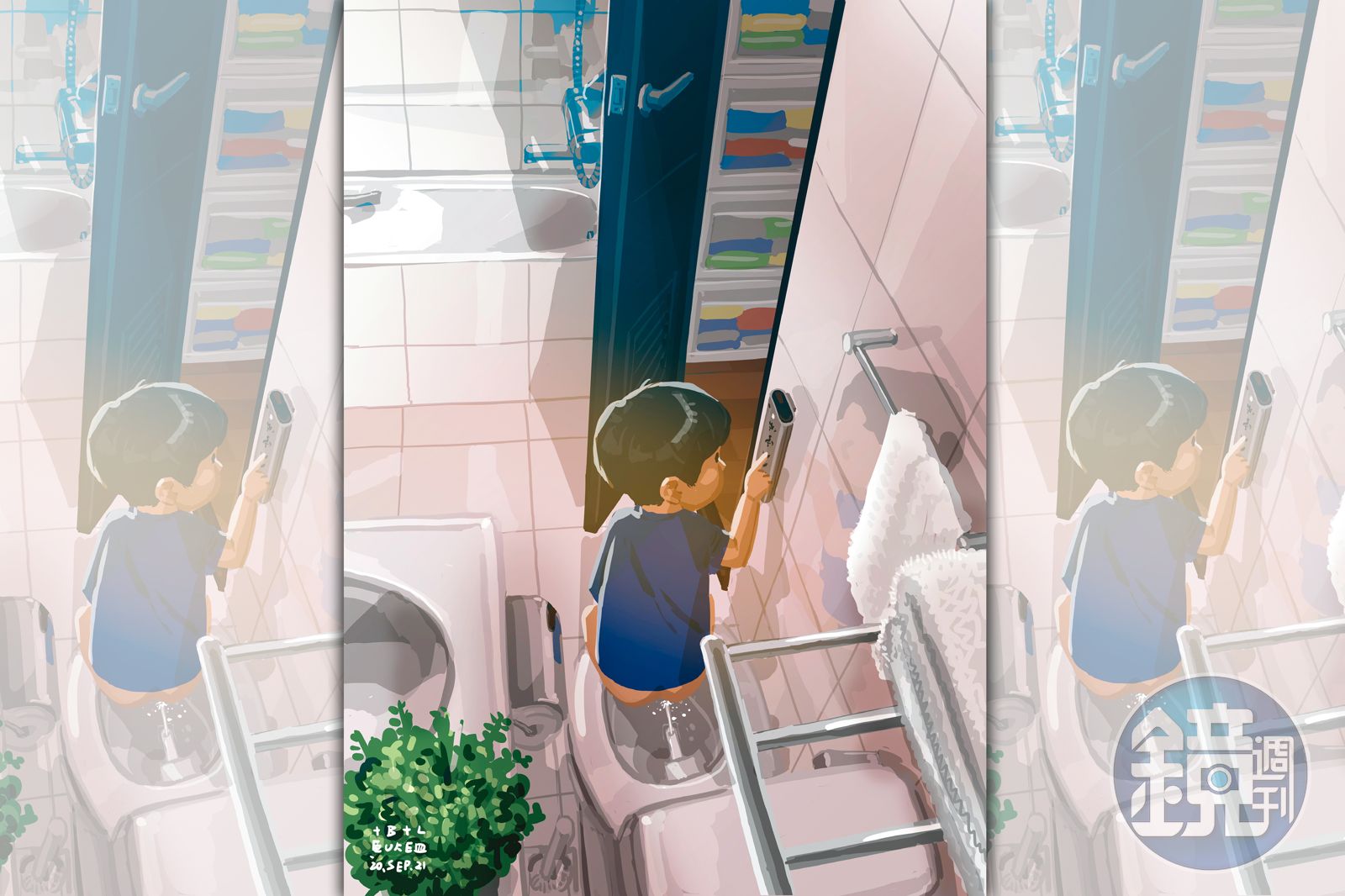 2021.12.07 05:58 臺北時間【單親爸爸週記】沖屁股文化發布時間:2021.12.07 05:58 臺北時間更新時間:2023.09.12 20:40 臺北時間圖文|藍聖傑 編輯|翟翱已複製連結贊助本文加入訂閱會員電梯免治馬桶單親爸爸週記有了免治馬桶,兒子終於可以自己完成上廁所。以往我在家中忙,忽然一聲「爸爸我大好了!」我就要丟下手邊事,去幫他擦屁股。現在使用的是他,爽到的是我。聽起來很像免治馬桶廣告,但真的是真心話啊。有小孩後,伴隨而來一種理解的循環。看到推車的爸媽都會特地多等一下,幫人家開關門。兒子兩歲時我推著他搭電梯,一位女子出電梯後特別跑回來幫我按著開門鍵。現在兒子不需要推車了,換我來幫別人。藍聖傑插畫、動漫藝術家,以單幅插畫繪本呈現單親奶爸帶兒子的生活甘苦點滴,引發強烈共鳴,臉書上全球逾百萬人次分享。更新時間|2023.09.12 20:40 臺北時間延伸閱讀【單親爸爸週記】很少運動的城市小孩【單親爸爸週記】一起認路【單親爸爸週記】桌子底下玩【單親爸爸週記】買腳踏車支持鏡週刊小心意大意義小額贊助鏡週刊!贊助本文每期 $35 元動態話題報導無限閱讀解鎖新鮮事加入訂閱會員鏡週刊加入追蹤訂閱下載鏡週刊加入追蹤訂閱下載更多內容,歡迎 鏡週刊紙本雜誌、鏡週刊數位訂閱、了解內容授權資訊。獨家深度分析報導線上閱讀