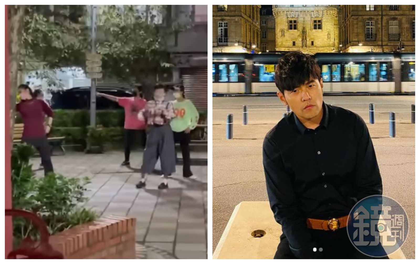 幾位婦女在公園跳〈Mojito〉,男星阿Ken隨後也跟著跳,讓周杰倫(右圖)看得哭笑不得。(翻攝周杰倫IG)發布時間:2021.12.01 11:42 臺北時間