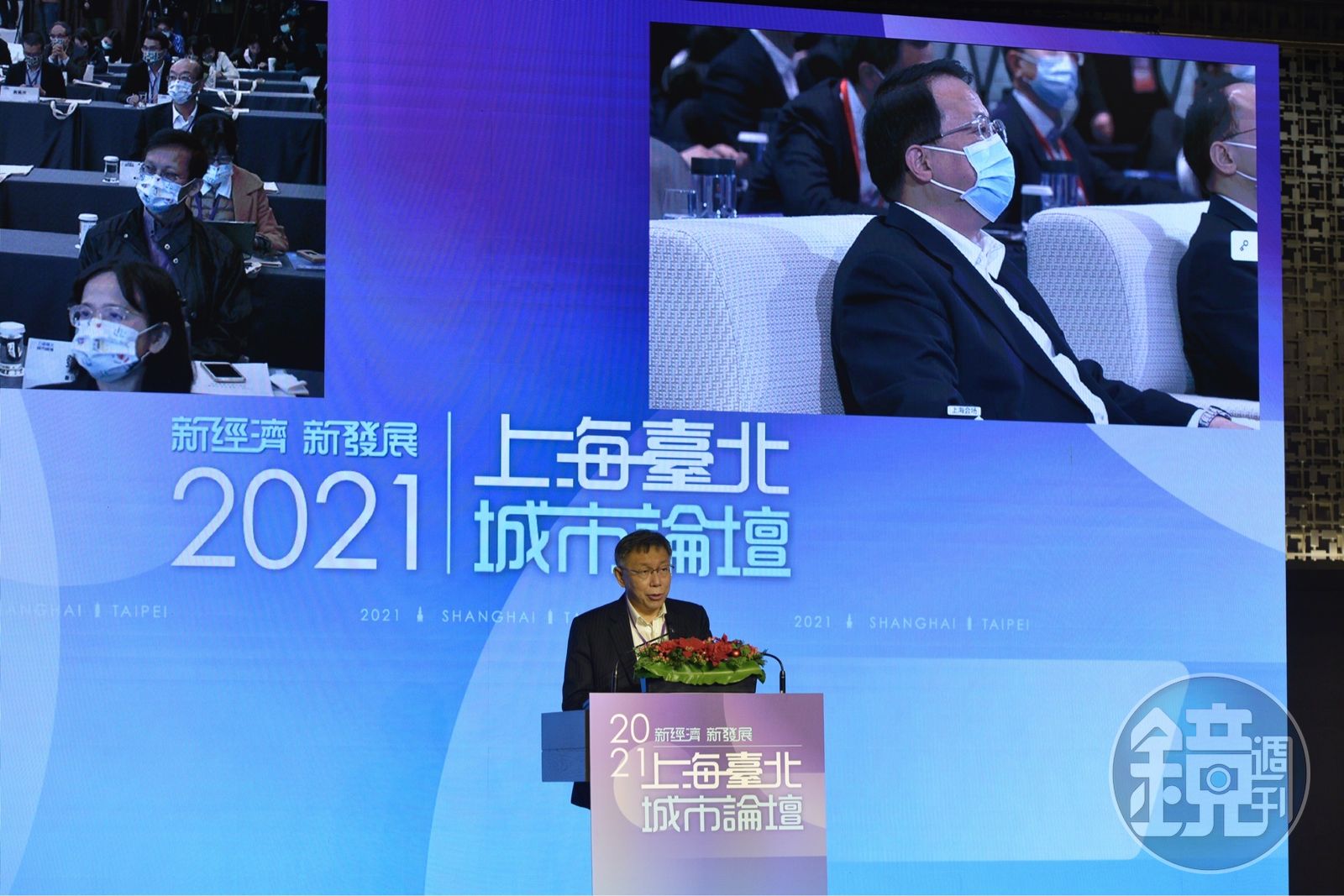 受限疫情因素而改採視訊方式進行的雙城論壇,今年的主題為「新經濟、新發展」,除了雙城市長,也安排台北市副市長蔡炳坤與上海副市長陳通等人專題演講。