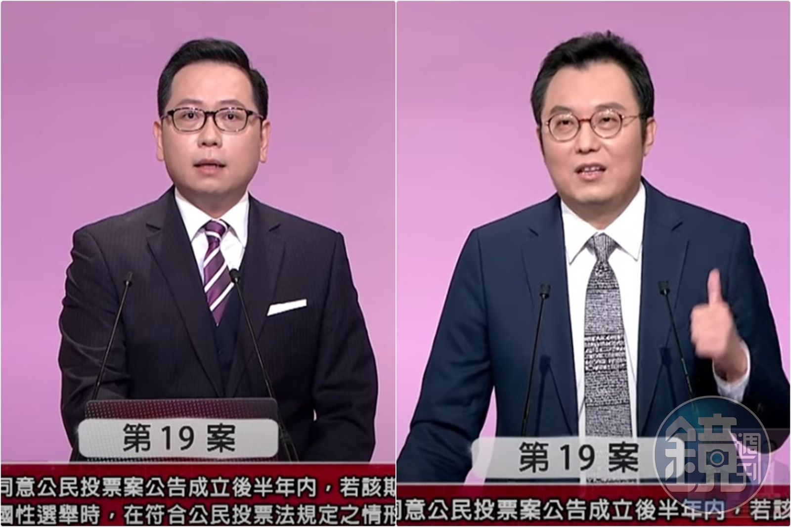 洪偉勝開場即表示,「我就是國民黨主席朱立倫所不願意同台,讓其他參與代表都被比喻為下駟的那位律師」,且公投是對事不對人,是為了直接民主,不是為了拚輸贏,投的是「要怎麼樣比較好」的問題。並指國民黨長期阻止公投,公投法讓公投變成鳥籠公投,2018年公投第一次綁大選,造成選務工作辛苦,選民拿小抄投票亂象,這不是廣增投票所就能解決的問題,甚至造成台北市長柯文哲贏得不爽快,對手丁守中輸得不甘願還提訴訟。