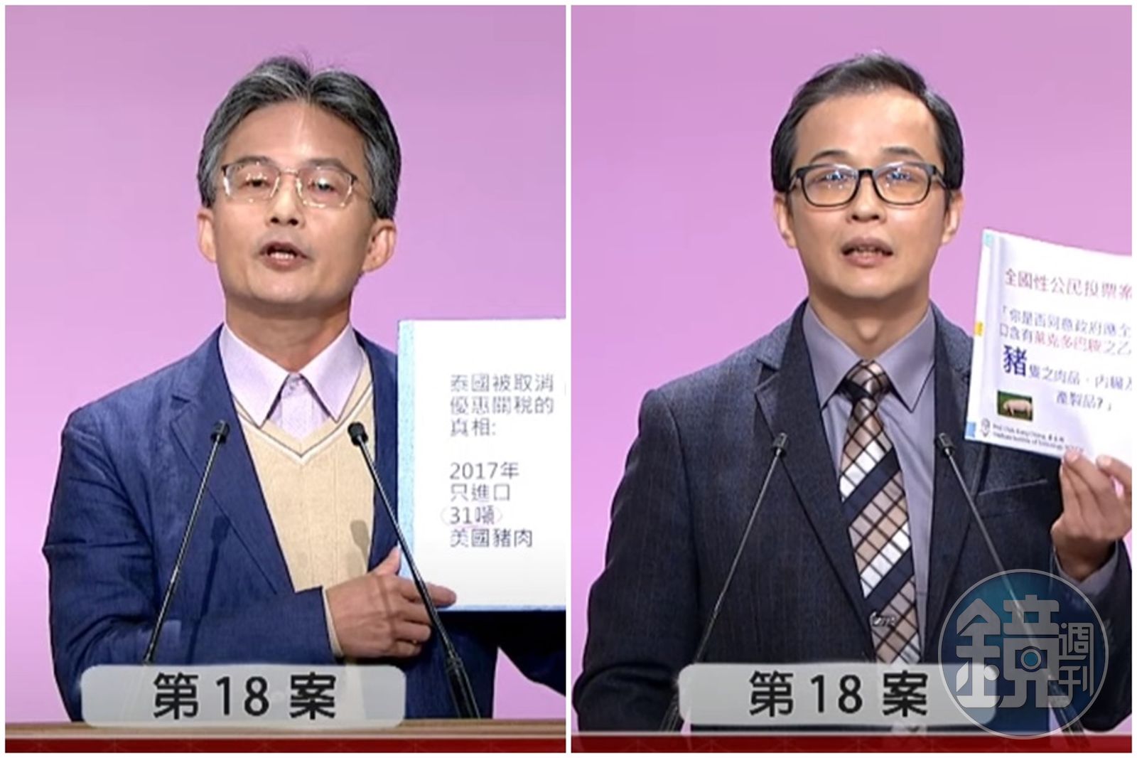 反方姜至剛則表示,今天不是在講DES,而是要重點擺在萊克多巴胺,台灣經歷3次政黨輪替,執政黨永遠都是正方,未來2024年,是否還要再重回萊劑的爭議中打轉,他認為萊劑爭議應該要落幕了。世界有109國開放萊豬進口,且沒有一個國家推翻國際食品法典委員會(CODEX)所訂下的標準。