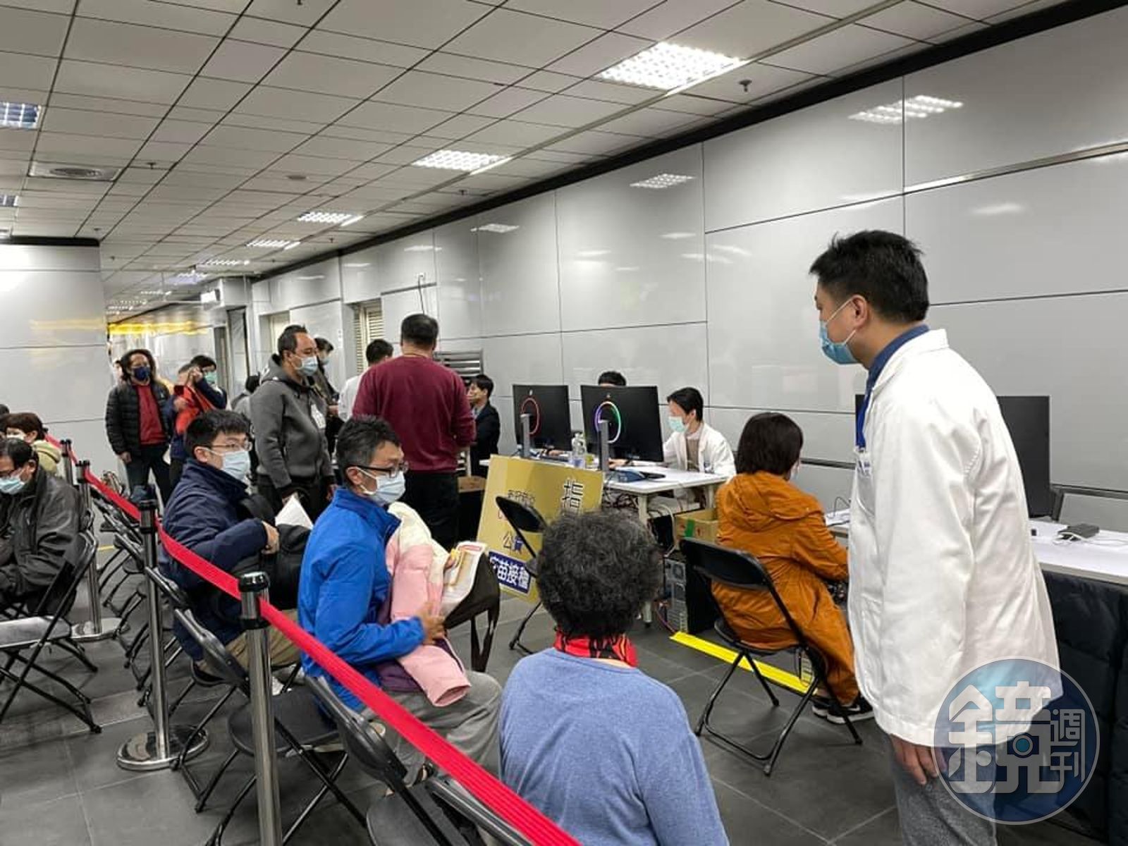 而這百元禮券贈品似乎也奏效了,今日開放接種前1小時便開始有人排隊,開打前3分鐘人數就破百,到了下班時段人潮再度爆增,還出動員警維持秩序,人龍一路從西一門排到南二門,再延伸至東三門,雖然隊伍消化速度相當快,但後面補上的人數也很快。