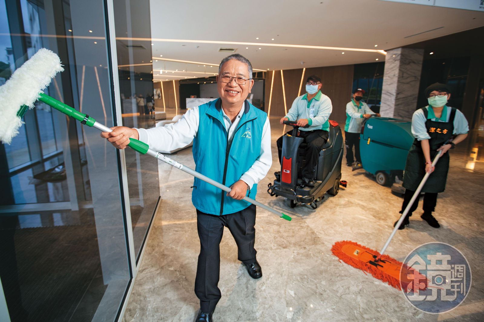 雖然黃昭贊早已從半工半讀的清潔工搖身大老闆,但他知道清潔是非常弱勢的行業,始終兢兢業業,一直苦思轉型,也常去國外考察,希望提升產業地位,至少讓第一線清潔人員多些保障,「像國外最大的加盟系統,就是清潔業,但台灣很難做到。」他也早在1991年,就把日本病媒防治第一品牌的技術引進台灣,「醫院清潔的門檻較高,我們有了消毒品牌,雙管齊下才更有優勢搶下醫院這塊。」