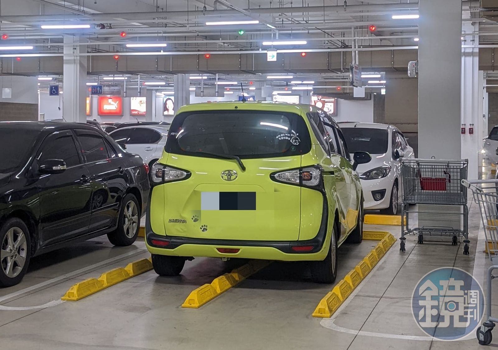 也有網友輕鬆看待,「這停法其實也蠻厲害的……底盤夠高」「底盤低的還沒辦法做到⋯」「車主會不會真的以為,那是停車位??」「毫無違和感」「很棒,沒有壓線」「生活智慧王」「車主心裡的OS : 這個車位好特別,車位標線還立體的…」「肯定是賣場員工太認真了!推車收的太勤了!」「其實還滿有創意的,顏色也搭」。