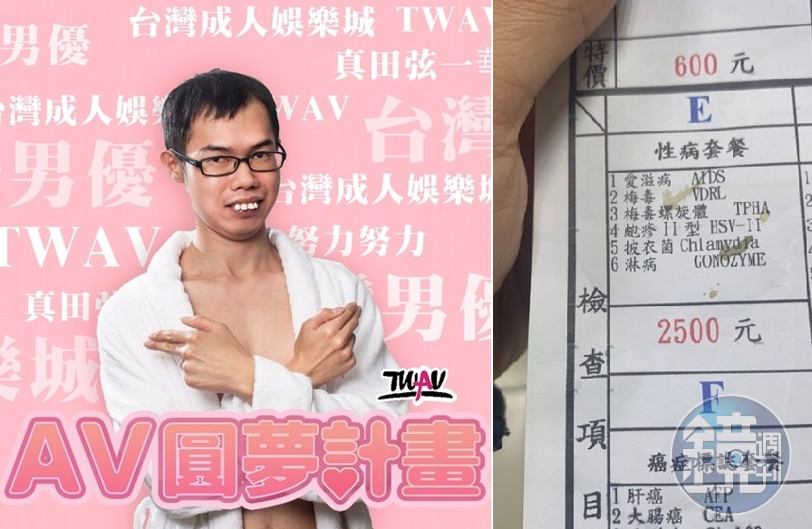 網紅鄧佳華性病套餐的6項檢驗報告曝光,身體健康確定可以成為男優。(翻攝自戲引子臉書)鄧佳華首部AV作品對手女優為正妹孟若羽,因為臉上有一顆痣而有暗黑楊丞琳的封號,三圍32F、26、36,是TWAV的製片被20幾個女優打槍後,用誠意打動她來拍攝。