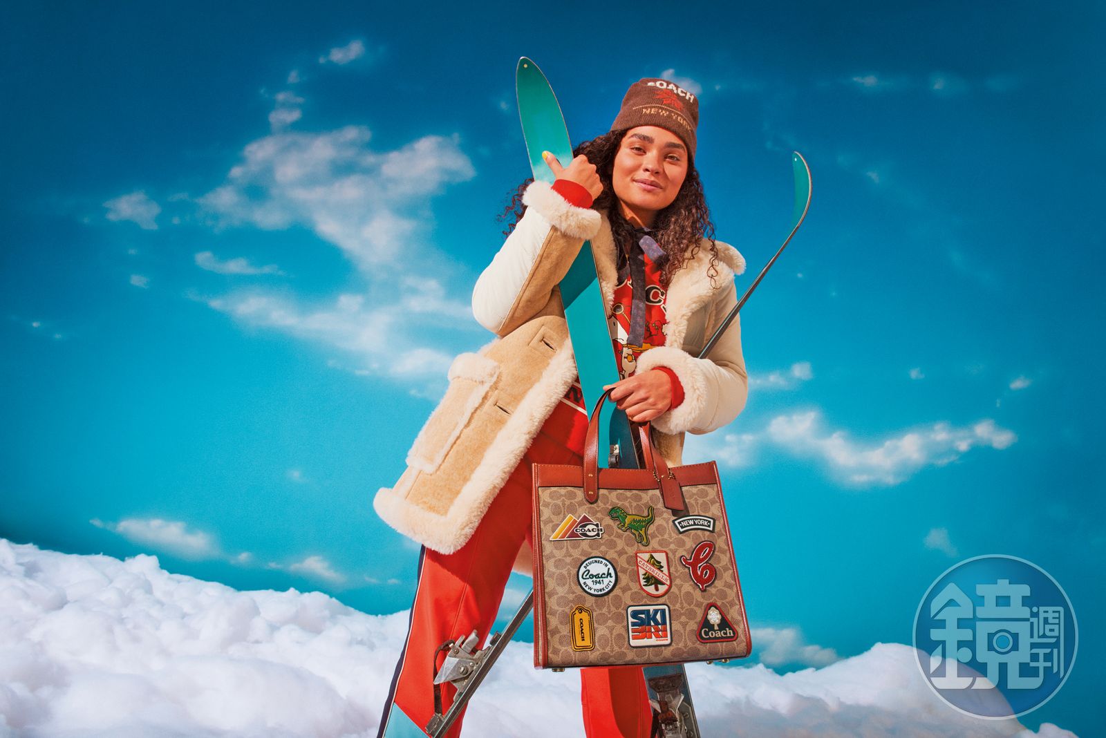 COACH的Ski滑雪系列,主打懷舊的冬季運動服飾,運用復古單品等新的圖像語言顛覆品牌經典元素,包括結合Shearling與繽紛尼龍條紋的外套、絎縫皮革手袋、毛衣及雪靴等單品,都是運用美式運動服裝繽紛搶眼的色彩,傳達冬季的冒險以及未來的各種可能性。