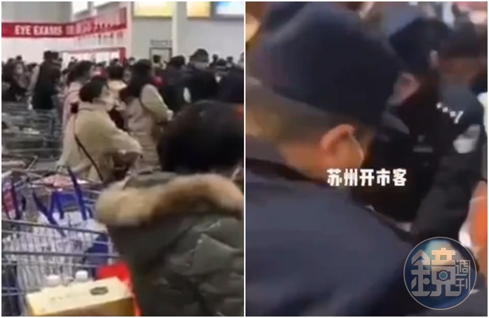 好市多蘇州店8日開幕,現場人潮壅塞,連維安人員都出動了。(翻攝推特)發布時間:2021.12.10 11:08 臺北時間
