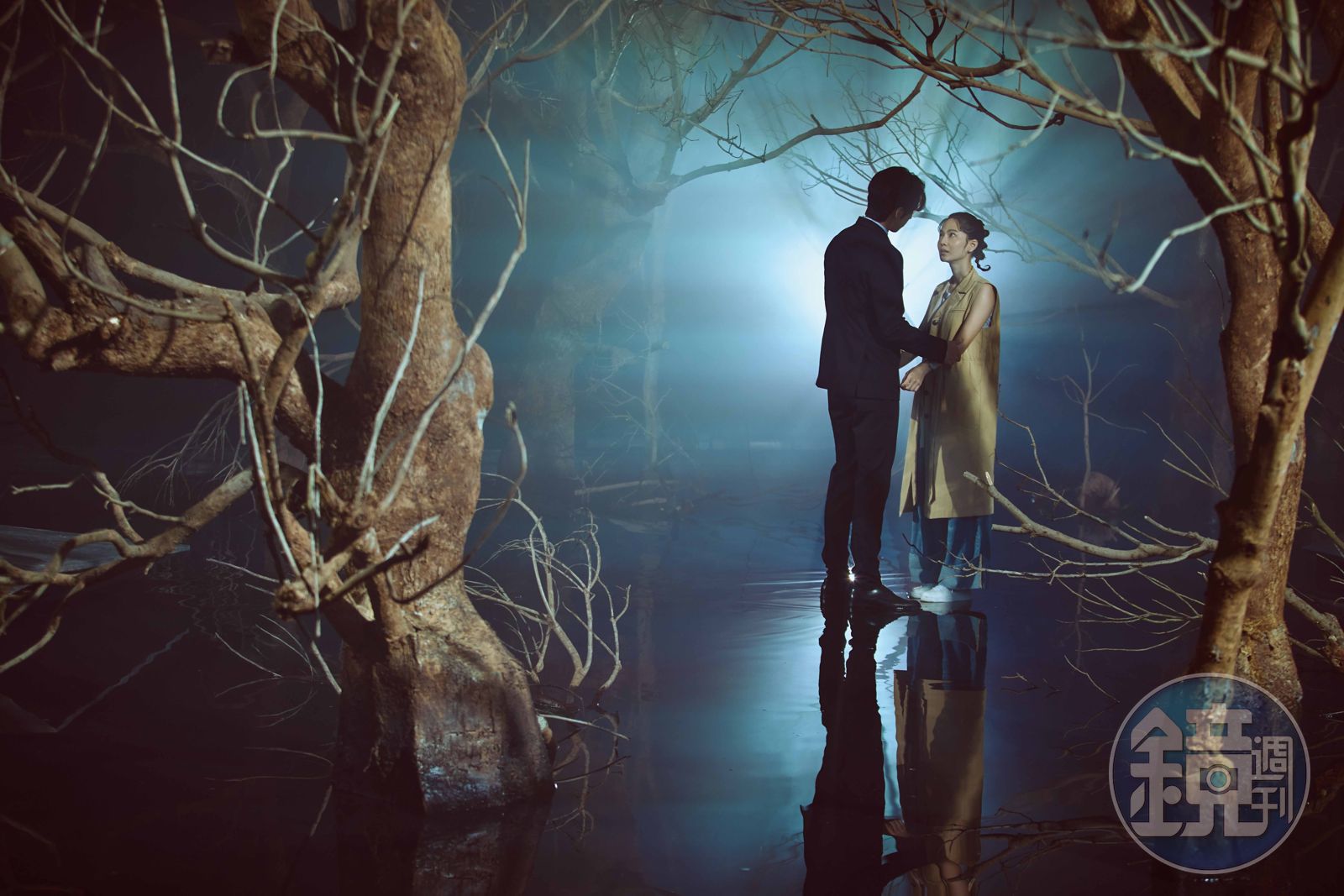 美術指導張文雄表示:「陰陽交界地的美術發想是來自男女主角在林蔭大道這個場景的反轉,充滿了失去、離別、一點點死亡的意味與寓意。」劇組準備了近50棵枯樹,平均樹高在7米到10米之間,水池平面則有600平方公尺,再注入約15公分高的水量來打造,「這個尺寸讓淺水池有無邊無際的視覺感,水的元素象徵反射人的內心,既可以平靜,也可以波動。」