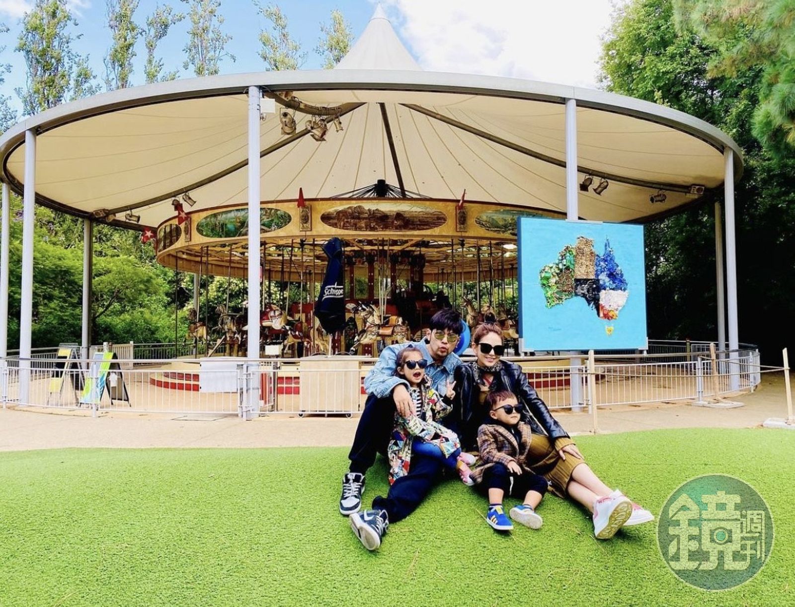 周杰倫(後排左)與昆凌(後排右)育有一雙兒女,也常在社群網站分享生活點滴。(翻攝自昆凌IG)發布時間:2021.12.13 21:17 臺北時間