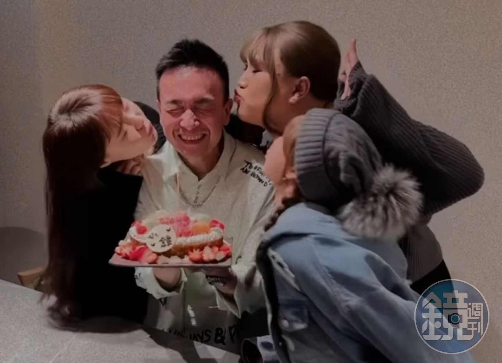 林莎、元元、黃小愛一起為小鐘慶生獻吻。(翻攝自小鐘IG)發布時間:2021.12.15 09:24 臺北時間
