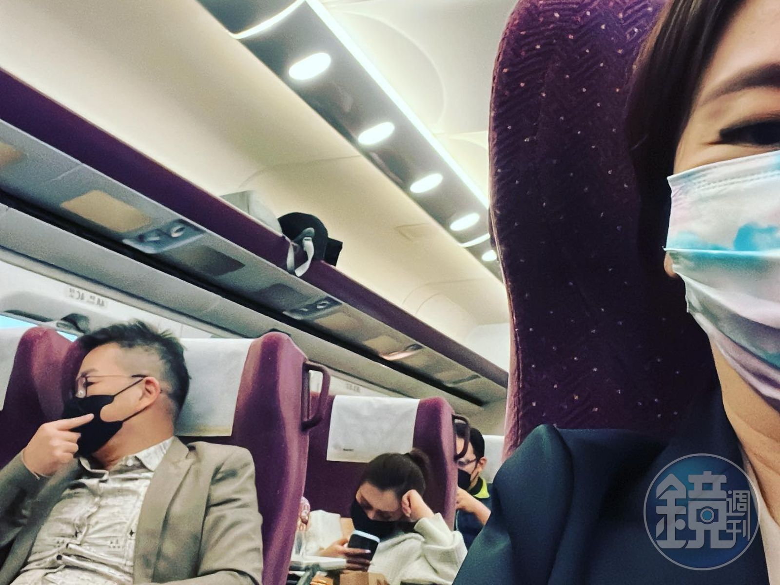 陶晶瑩默默拍下一張和沈玉琳前後排座位合影,笑說沈玉琳一路到下車都沒有發現她,沉浸在和隔壁友人聊天的世界裡。「他不知道我偷拍他,聽他一路虎蘭好好笑。」她分享當天聽到的金句是「家庭要和諧就要在家裡當個龜孫子。」