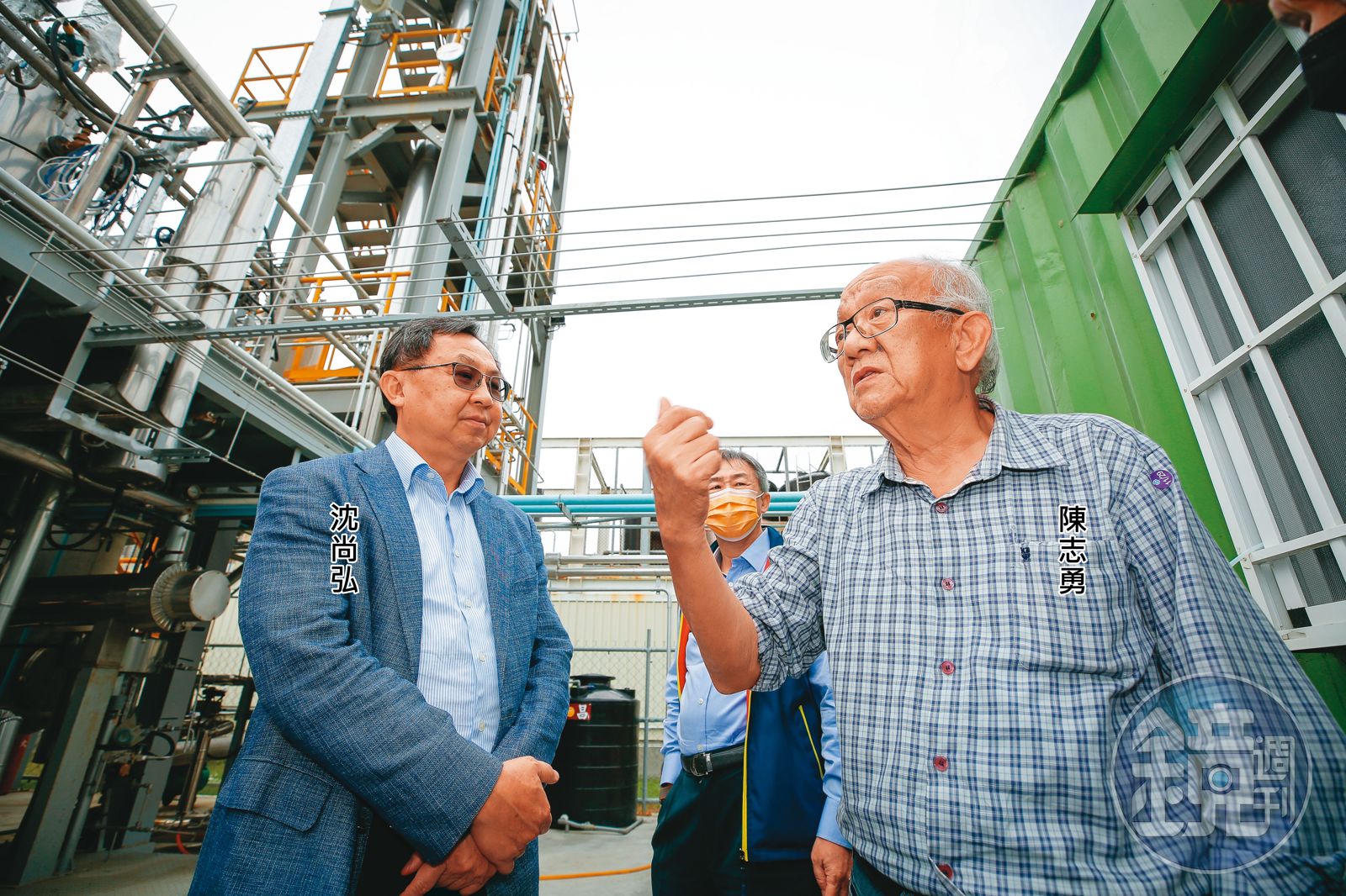 走在沈尚弘身邊,一路陪著導覽碳捕捉示範工廠的人,正是國內研發碳捕捉技術的頂尖專家—成大匯智綠色科技研究中心主任陳志勇,過去曾是行政院科技會報循環經濟材料組首席評議專家,畢生致力於碳中和課題。人稱「勇伯」的陳志勇,是國內投入碳中和研究先驅。「這是我一生的志業,面對(全球暖化)危機就是轉機,(企業力拼零碳)轉機帶來商機(石化原料變新碳源)。」陳志勇向本刊說。