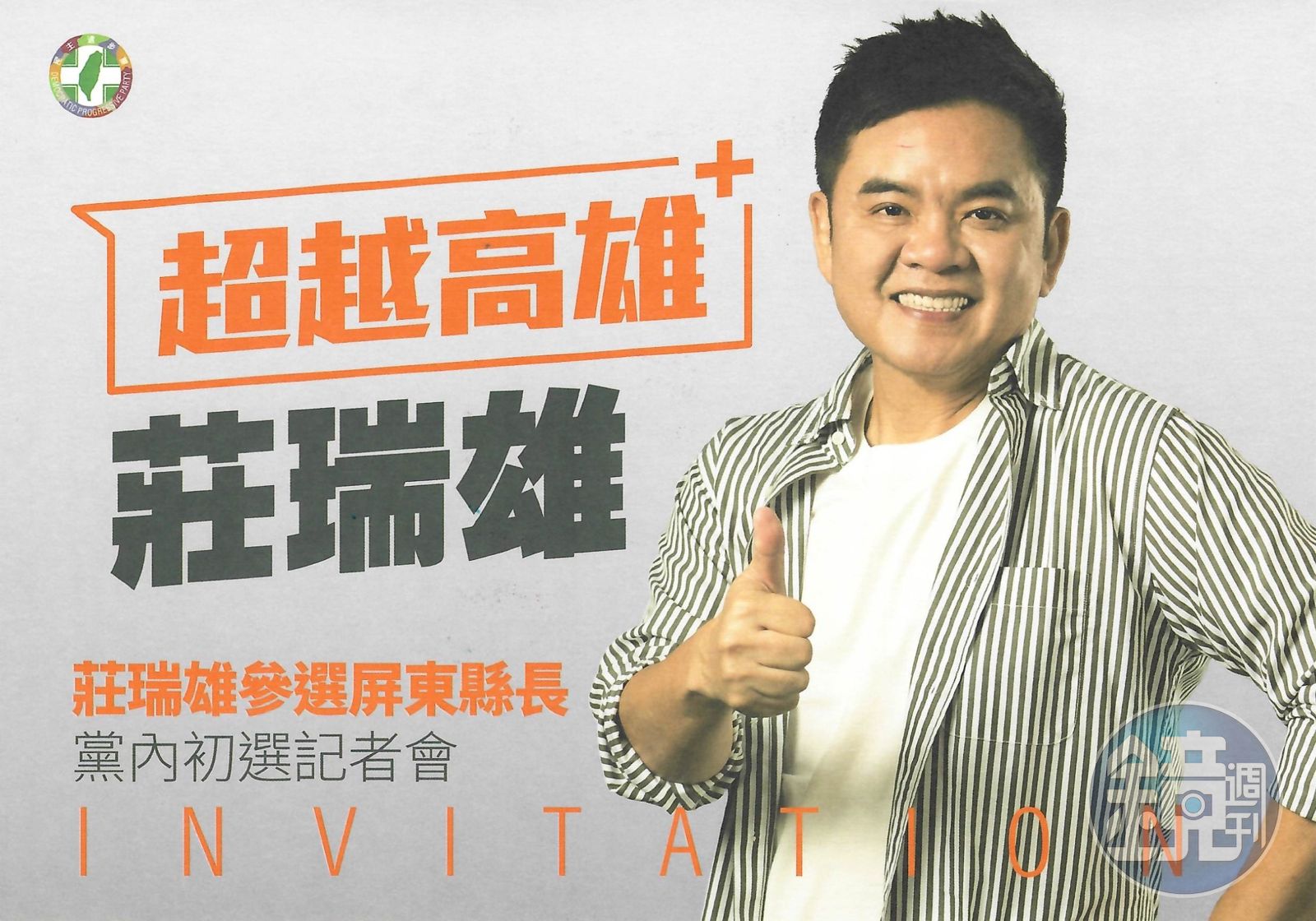 民進黨立委莊瑞雄今(17日)正式發出「參選屏東縣長黨內初選記者會」邀請函,以「超越高雄」為標語,預計在公投後、12月22日於台北啟動參選儀式。(讀者提供)發布時間:2021.12.17 12:23 臺北時間